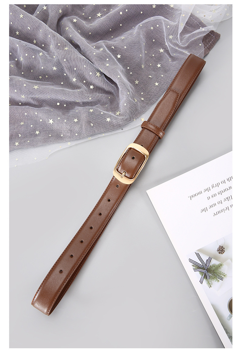 Mô tả sản phẩm - Đai váy da bò Genuine Leather khóa cài tiện lợi, khi đeo, phần dây dư sẽ được ẩn vào trong giúp outfit của bạn trông gọn gàng và thanh lịch
