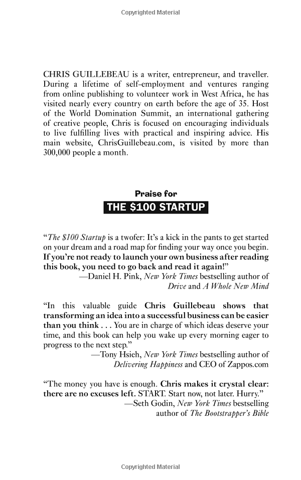 The $100 Startup - Fire Your Boss, Do What You Love And Work Better To Live More Change your job to change your life You no longer need to work nine-to-five in a big company