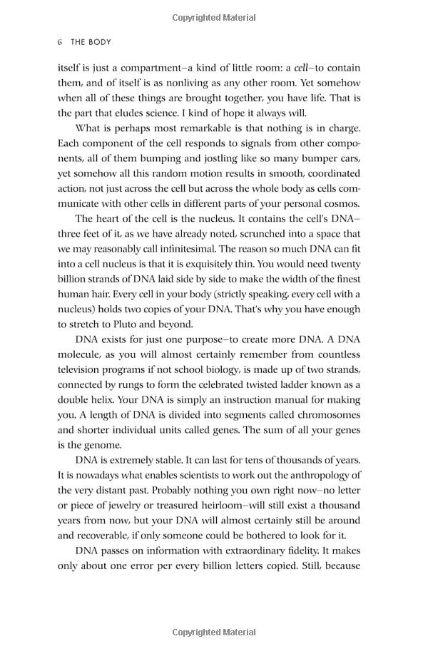 A wonderful successor to A Short History of Nearly Everything, this new book is an instant classic. It will have you marvelling at the form you occupy, and celebrating the genius of your existence, time and time again.