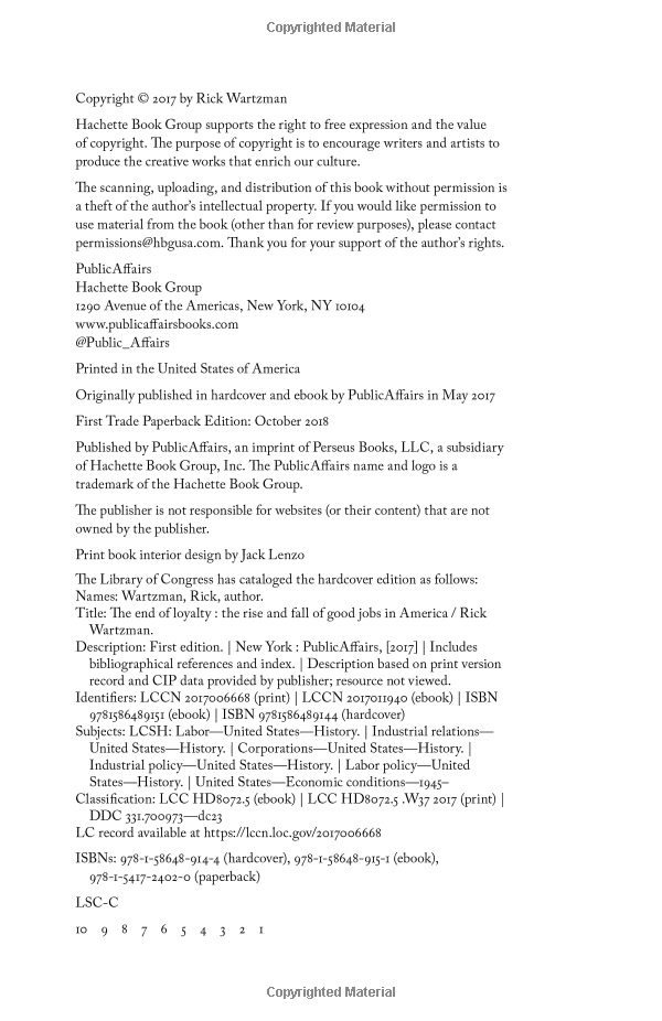 But the corporate social contract didn't last. By tracing the ups and downs of these four corporate icons over seventy years, Wartzman illustrates just how much has been lost: job security and steadily rising pay, guaranteed pensions, robust health benefits, and much more. Charting the Golden Age of the '50s and '60s; the turbulent years of the '70s and '80s; and the growth of downsizing, outsourcing, and instability in the modern era, Wartzman's narrative is a biography of the American Dream gone sideways.