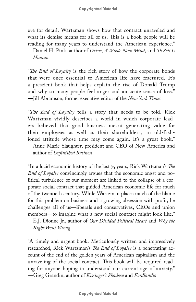 Deeply researched and compelling, The End of Loyalty will make you rethink how Americans can begin to resurrect the middle class.