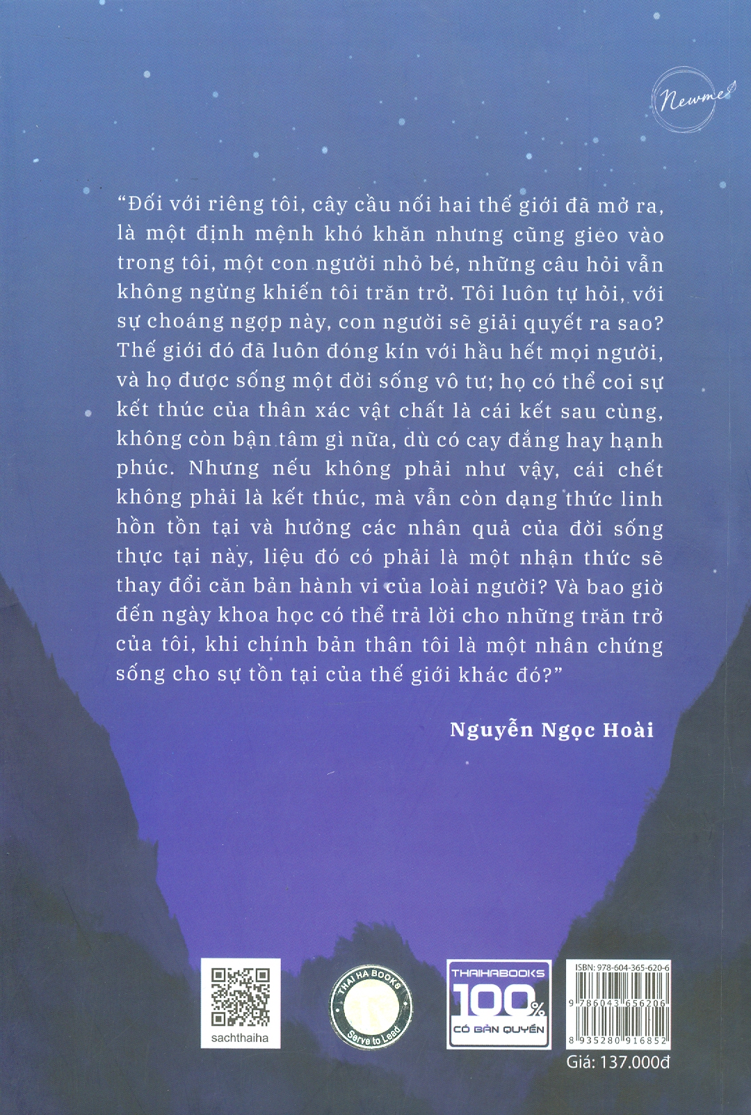 Tác giả – nhà ngoại cảm Nguyễn Ngọc Hoài chính là người ghi chép lại tất cả những hiểu biết về thế giới giới tâm linh đã và đang phủ bóng lên đời mình, trung thực lưu lại kiến thức và trải nghiệm trong gần một phần tư thế kỷ sở hữu năng lực tâm linh, thực hành công việc tiếp xúc với vong hồn và tìm mộ liệt sĩ trong vai trò nhà ngoại cảm công tác trong các cơ quan nghiên cứu về tiềm năng con người của Việt Nam.