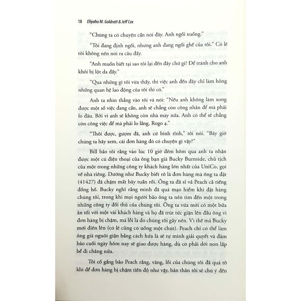 Câu chuyện về cuộc chiến giải cứu nhà máy của Alex không chỉ hấp dẫn đơn thuần về nội dung. Nó ẩn chứa một thông điệp nghiêm túc cho tất cả các nhà quản lý và giải thích những ý tưởng về “Lý thuyết các điểm hạn chế (TOC)” được phát triển bởi Eliyahu M. Goldratt – người được quốc tế công nhận là bậc thầy trong việc phát triển các khái niệm và hệ thống quản lý kinh doanh mới.