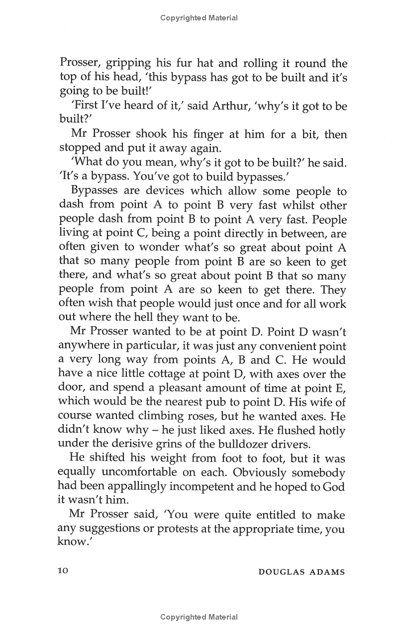 It's an ordinary Thursday lunchtime for Arthur Dent until his house gets demolished. The Earth follows shortly afterwards to make way for a new hyperspace express route, and his best friend has just announced that he's an alien. At this moment, they're hurtling through space with nothing but their towels and an innocuous-looking book inscribed, in large friendly letters, with the words: DON'T PANIC.