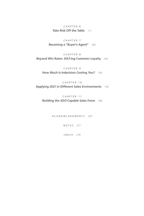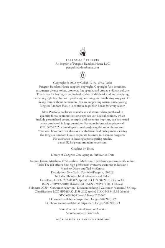 In sales, the worst thing you can hear from a customer isn't 'no.' It's 'I need to think about it.' When this happens, deeply entrenched business advice says to double down on your efforts to sell a buyer on all the ways they might win by choosing you and your business. But this approach backfires dramatically. Why? Because it completely gets wrong the primary driver behind purchasing decision-making: once purchase intent is established, customers no longer care about succeeding. What they really care about is not failing. For years, sales expert Matthew Dixon has been busting longstanding business myths. Now in The JOLT Effect, he and co-author Ted McKenna turn their trademark analysis and latest research to the vital and growing problem of customer indecision - and offer a shocking new approach that turns conventional wisdom on its head. Drawing on a brand-new, first-of-its-kind study of more than two and a half million sales conversations from across industry, they reveal the surprising truth that high-performing sales reps grasp and their average-performing peers don't: only by sing the customer s fear of failure can you get indecisive buyers to go from verbally committing to actually pulling the trigger. Packed with robust data, counterintuitive insights, and practical guidance, The JOLT Effect is the playbook for any salesperson or sales leader who wants to close the gap between customer intent and action - and close more sales.