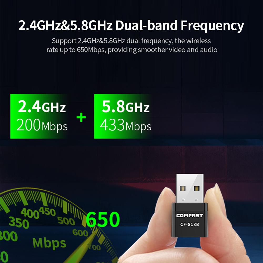 Features: Support 2.4GHz5.8GHz dual frequency, the wireless rate up to 650Mbps, providing smoother video and audio. Add BT function, easy to achieve BT wireless transmission. Analog AP function, insert the wireless network card into the