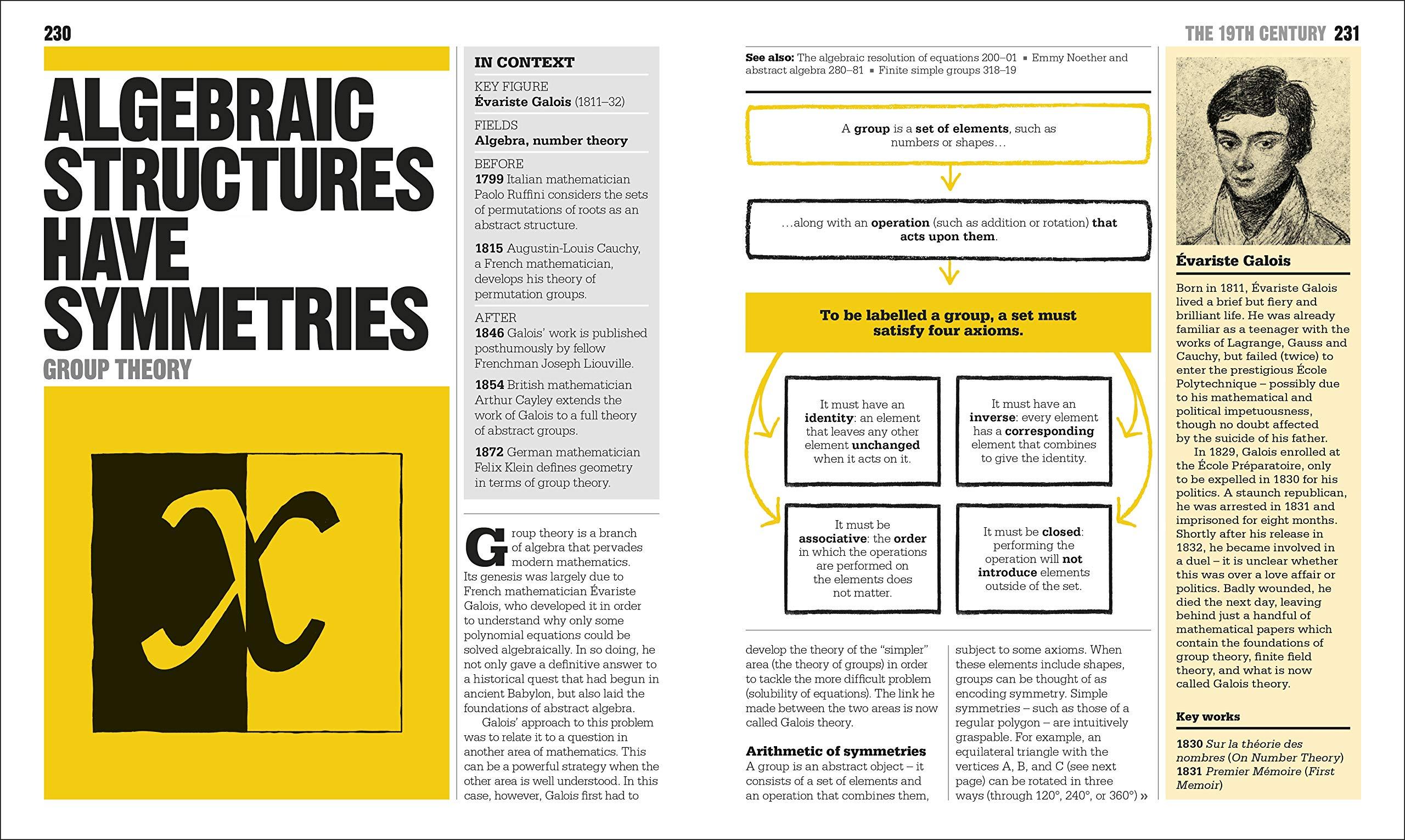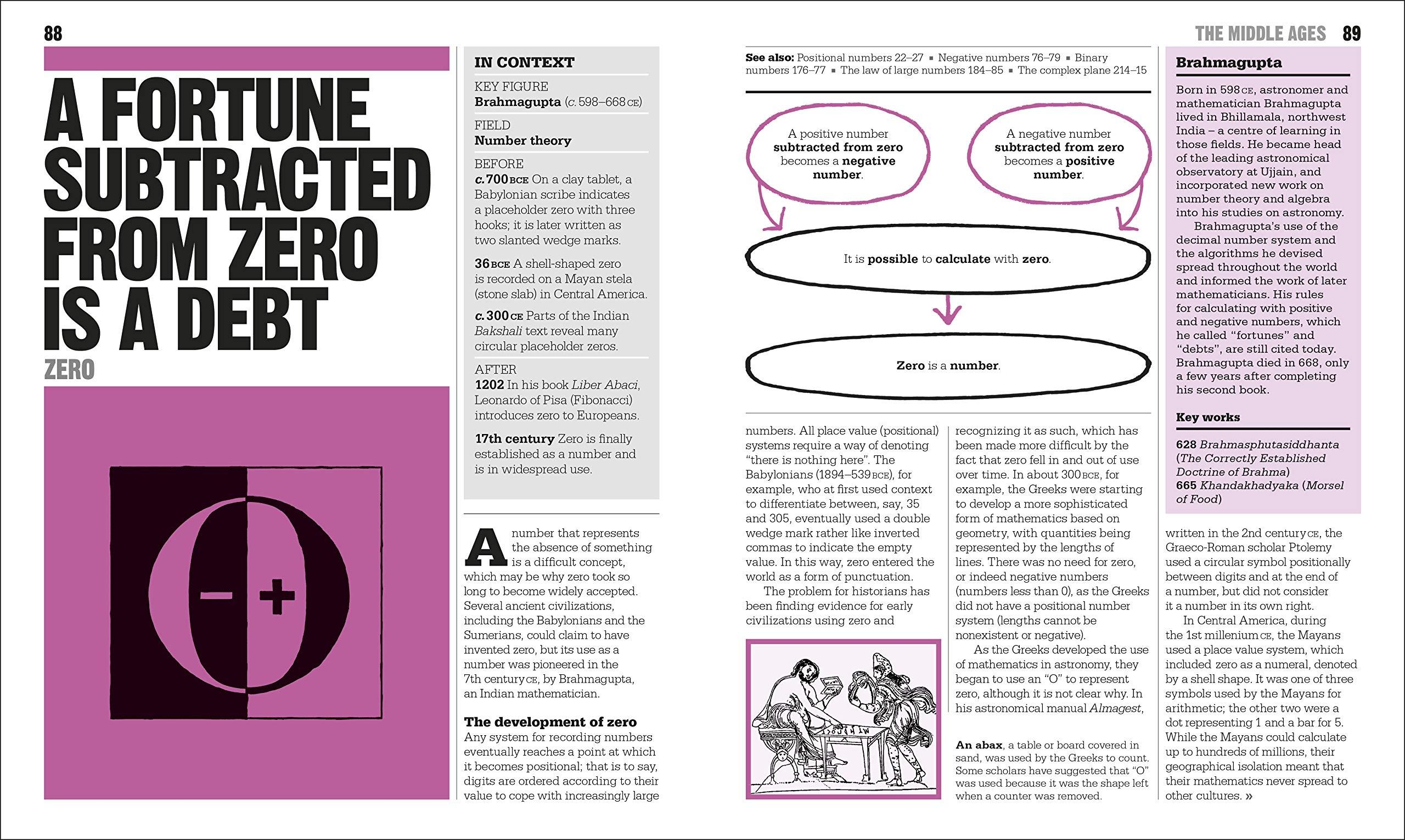 A vibrant exploration of the world's most famous and important mathematical ideas, theorems, and movements, and the great minds behind them.Take a journey through the intriguing story of numbers, patterns, and shapes in order to better understand the complex world we live in. Charting the development of maths around the world from Babylon to Bletchley Park, The Maths Book explores and explains more than 85 of the most complex and fascinating mathematical subjects. This diverse and inclusive account of mathematics will have something for everybody. It examines the maths behind world economies, secret spies, and modern technology such as computers, the internet, and AI. But it also traces the history of maths, from the mathematical ideas and inventions of the ancient world such as the first number systems, magic squares, and the Chinese abacus, through the discovery of zero and Fermat's last theorem, to the rise of group theory in the 19th century. Continuing the "Big Ideas" series' trademark combination of authoritative, clear text and bold graphics, The Maths Book uses an innovative visual approach to make the subject accessible to everyone, casual readers and students alike .