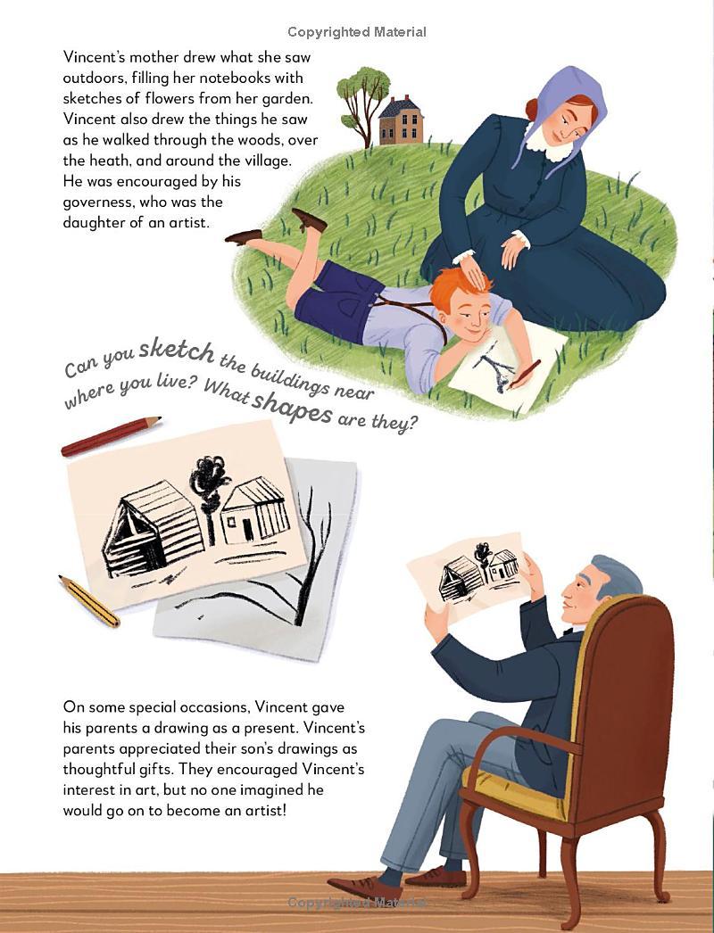 Have you ever wondered exactly what your favourite artists were looking at to make them draw, sculpt, or paint the way they did? In this charming illustrated series, created in full collaboration with the Metropolitan Museum of Art, you can see what they saw, and be inspired to create your own artworks, too. In the pages of this book, What the Artist Saw: Vincent van Gogh, meet famous Dutch painter Vincent van Gogh. Step into his life and learn what led him to paint his eye-catching self portraits. See the landscapes that inspired his famous Wheat Fields. Have a go at painting your own sunflowers!