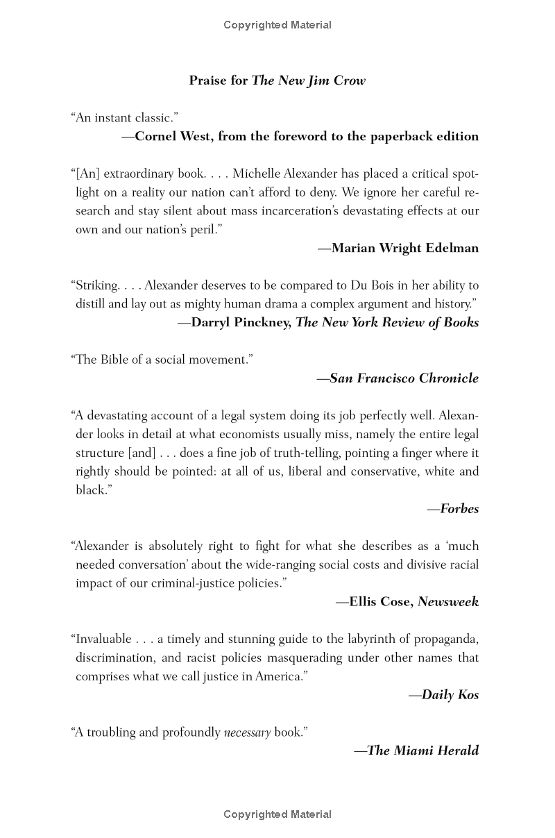 Seldom does a book have the impact of Michelle Alexander’s The New Jim Crow. Since it was first published in 2010, it has been cited in judicial decisions and has been adopted in campus-wide and community-wide reads; it helped inspire the creation of the Marshall Project and the new $100 million Art for Justice Fund; it has been the winner of numerous prizes, including the prestigious NAACP Image Award; and it has spent nearly 250 weeks on the New York Times bestseller list.