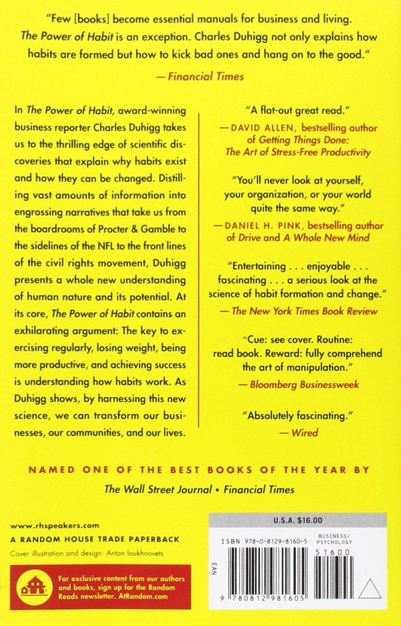 In The Power of Habit, Pulitzer Prize–winning business reporter Charles Duhigg takes us to the thrilling edge of scientific discoveries that explain why habits exist and how they can be changed. Distilling vast amounts of information into engrossing narratives that take us from the boardrooms of Procter & Gamble to sidelines of the NFL to the front lines of the civil rights movement, Duhigg presents a whole new understanding of human nature and its potential. At its core, The Power of Habit contains an exhilarating argument: The key to exercising regularly, losing weight, being more productive, and achieving success is understanding how habits work. As Duhigg shows, by harnessing this new science, we can transform our businesses, our communities, and our lives.
