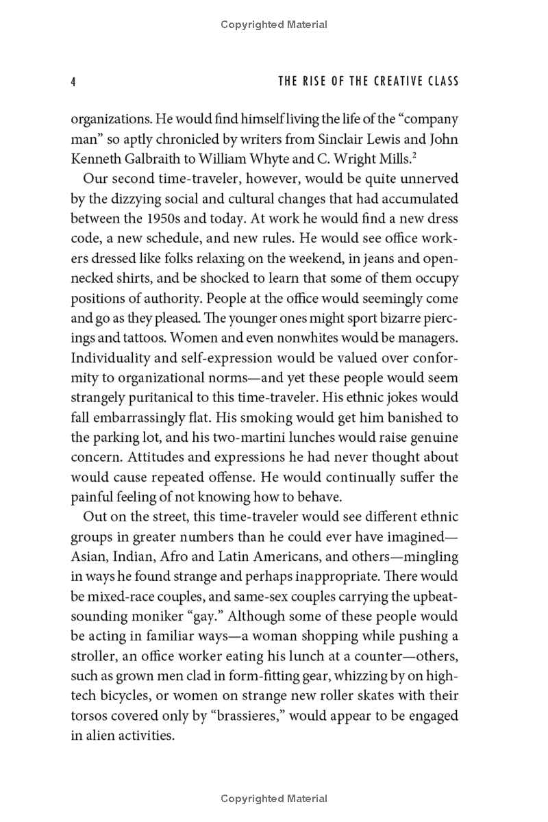 In his modern classic The Rise of the Creative Class, urbanist Richard Florida identifies the emergence of a new social class reshaping the twenty-first century's economy, geography, and workplace. This Creative Class is made up of engineers and managers, academics and musicians, researchers, designers, entrepreneurs and lawyers, poets and programmer, whose work turns on the creation of new forms. Increasingly, Florida observes, this Creative Class determines how workplaces are organized, which companies prosper or go bankrupt, and which cities thrive, stagnate or decline.