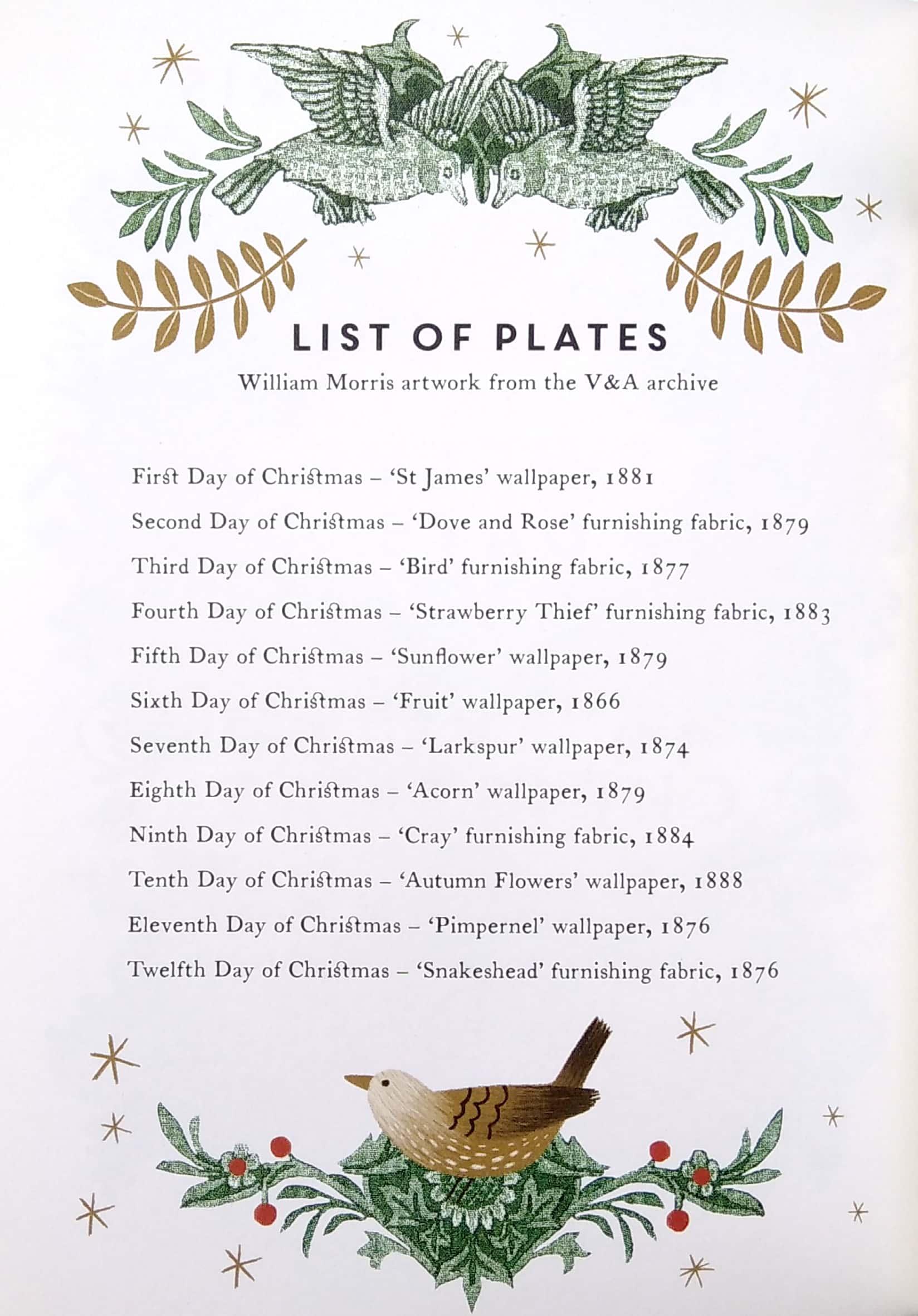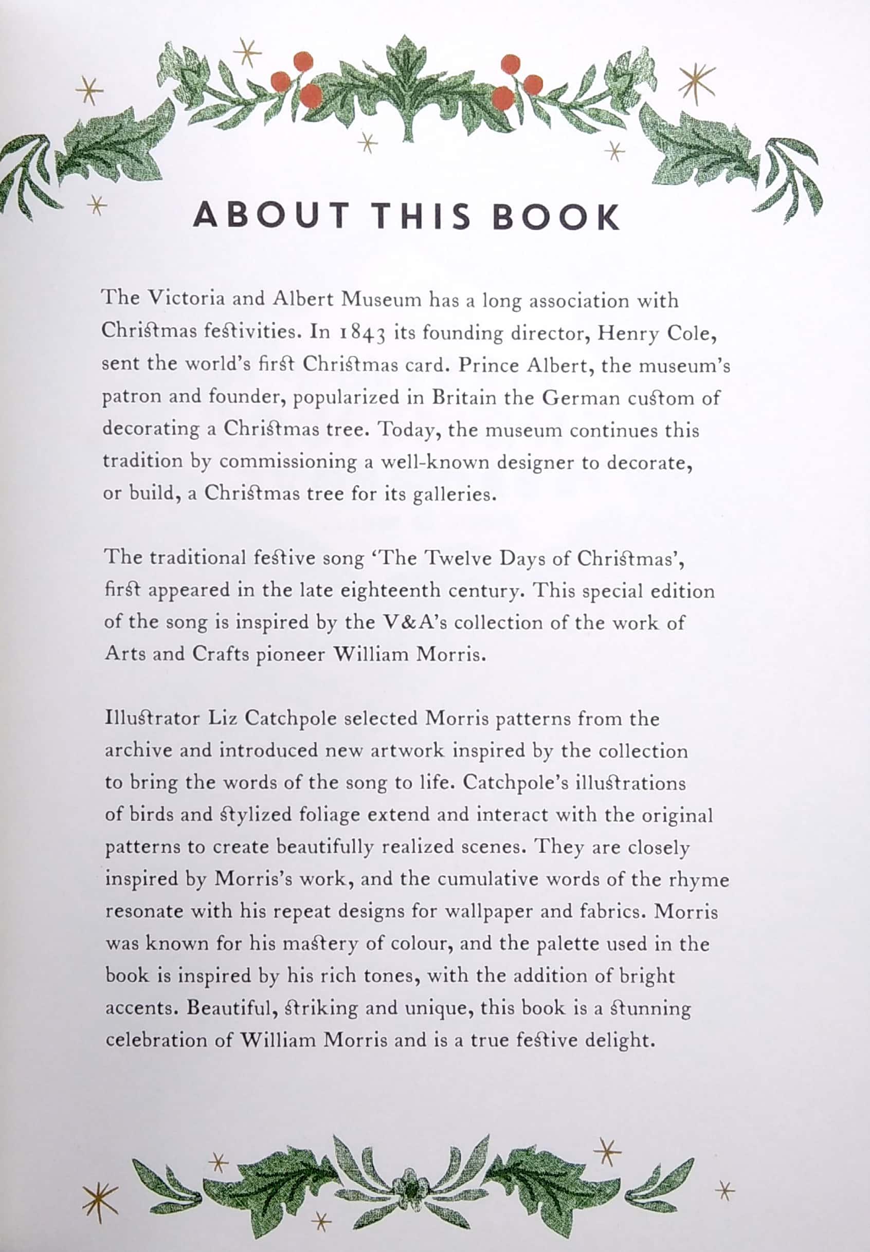Combining hand-picked patterns from the V&A's William Morris archive with brilliant new illustrations, this beautiful book brings the words of the classic Twelve Days of Christmas song to life.