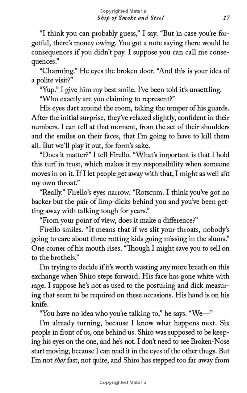 "Truly epic, fierce, and exhilarating, Ship of Smoke and Steel will capture you and lock you away. With magical combat sequences fit for the big screen, the action is almost as breathtaking as the intrigue." --Morgan Rhodes, New York Times bestselling author of the Falling Kingdoms series
