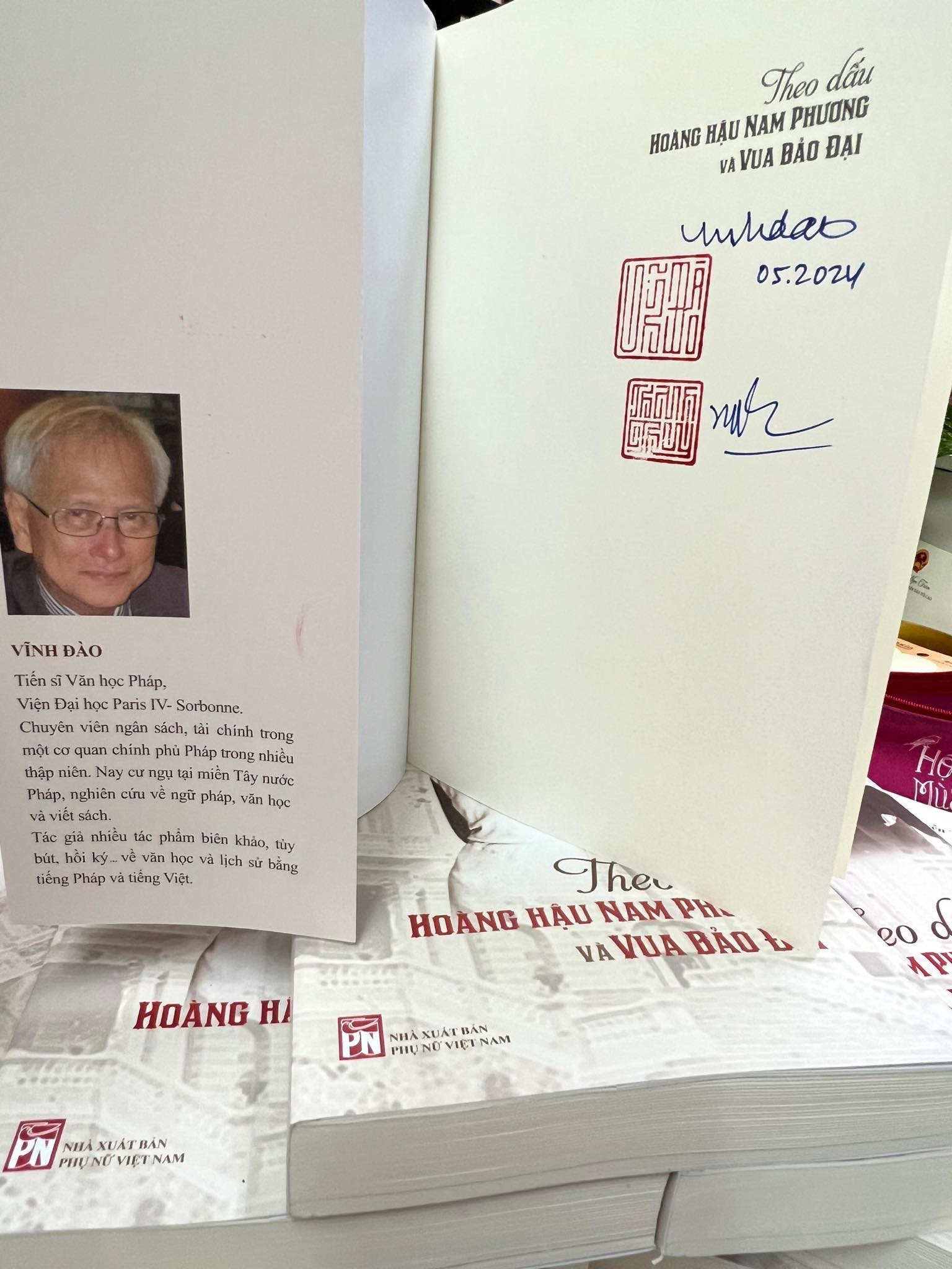 heo Dấu Hoàng Hậu Nam Phương Và Vua Bảo Đại Vua Bảo Đại (1913-1997) và Hoàng hậu Nam Phương (1913- 1963) là hai nhân vật lịch sử chiếm được khá nhiều sự quan tâm của công chúng, có lẽ do họ là vua và hoàng hậu cuối cùng của chế độ quân chủ ở Việt Nam, và cũng có lẽ do cuộc đời, con người họ khá đặc biệt. Đã có nhiều cuốn sách viết riêng về Vua Bảo Đại và Hoàng hậu Nam Phương, tuy nhiên trong đó có nhiều chi tiết, sự kiện chưa được kiểm chứng và đối chiếu, thậm chí có những chi tiết thêu dệt thành giai thoại. Thế nên, xung quanh Vua Bảo Đại và Hoàng hậu Nam Phương có nhiều giai thoại, nhiều sự kiện, sự việc được ghi chép khác nhau, thậm chí là bất nhất. Hai tác giả của Theo dấu Hoàng hậu Nam Phương và Vua Bảo Đại - Vĩnh Đào và Nguyễn Thị Thanh Thúy - đã ròng rã suốt ba năm trời thực hiện nhiều chuyến đi thực tế đến những nơi lưu dấu của Vua Bảo Đại và Hoàng hậu Nam Phương ở Việt Nam, từ Sài Gòn về Tiền Giang, rồi từ Tiền Giang về Thủ Đức, Chợ Lớn, Biên Hòa, lên Đà Lạt, Kon Tum, ra Quy Nhơn, Huế, Hà Nội… cùng những chuyến đi ở Pháp, đến những nơi nhà vua, Hoàng hậu đã đi qua, sinh sống, để tìm tư liệu, gặp nhân chứng và hậu duệ của những người cùng thời, phỏng vấn nhiều nhân chứng trong và ngoài nước, trong đó có cựu thị trưởng làng Chabrignac để tìm hiểu, đối chứng. Bên cạnh đó là sự dày công sưu tầm, khảo cứu từ nhiều nguồn tài liệu sách báo xuất bản trong và ngoài nước ở Thư viện Tổng hợp Thành phố Hồ Chí Minh, Thư viện Quốc gia Việt Nam, Trung tâm Quốc gia Văn khố Hải ngoại (Aix-en-Provence, Pháp), các thư viện của tu viện dòng Mến Thánh giá Chợ Quán, dòng Đức Bà, Nhà thờ chính tòa Đức Bà Sài Gòn … để sưu tầm, khảo cứu, xác minh, kiểm chứng thông tin. Đặc biệt, tác giả Vĩnh Đào (Nguyễn Phước Vĩnh Đào) là con cháu hoàng tộc triều Nguyễn. Tác giả Vĩnh Đào và Vua Bảo Đại cùng là cháu của hai anh em ruột Miên Định - Miên Tông. Nguyễn Phước Vĩnh Đào là cháu Miên Định (Thọ Xuân Vương), Nguyễn Phước Vĩnh Thụy (Vua Bảo Đại) là cháu của Miên Tông (Vua Thiệu Trị). Tác giả Vĩnh Đào là người trong hoàng tộc, đồng thời là một nhà nghiên cứu nên các thông tin về Vua Bảo Đại và triều Nguyễn dưới thời Bảo Đại được ông tổng hợp và phân tích mang tính am hiểu sâu sắc. Cùng với đó, việc ông sinh sống và làm việc ở Pháp cũng là một điều kiện thuận lợi trong quá trình tìm hiểu, sưu tầm, tra cứu tư liệu về Vua Bảo Đại và Hoàng hậu Nam Phương. Nhờ vậy, cuốn sách này không chỉ cung cấp thông tin phong phú, có giá trị mà còn mang lại nhiều thông tin mới về: ngày tháng năm sinh chính xác, quê quán thực sự của Hoàng hậu Nam Phương; đóng góp của bà cho an sinh xã hội ở Việt Nam; quan hệ của bà với giới thượng lưu, quý tộc Pháp; những công việc triều chính của Vua Bảo Đại; thực hư về những câu chuyện tình cảm của Vua Bảo Đại và đặc biệt là quãng thời gian 16 năm ở Pháp của gia đình Hoàng hậu Nam Phương… Hy vọng cuốn sách Theo dấu Hoàng hậu Nam Phương và vua Bảo Đại – gắn liền với hành trình ba năm “theo dấu” của hai tác giả Vĩnh Đào, Nguyễn Thị Thanh Thúy để lý giải những thông tin bất nhất về cuộc đời vua và hoàng hậu cuối cùng của triều Nguyễn - sẽ cung cấp nhiều tư liệu hữu ích cho các quý độc giả quan tâm. Tuy nhiên, chúng tôi xin lưu ý, đây không phải là công trình nghiên cứu lịch sử chuyên khảo, mà chỉ là một cuốn tư liệu lịch sử về cuộc đời Vua Bảo Đại và Hoàng hậu Nam Phương, được thể hiện dưới góc nhìn và lập luận của cá nhân tác giả.