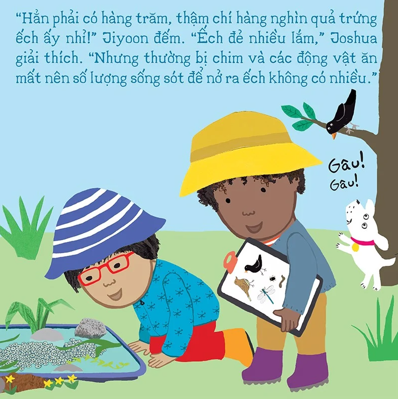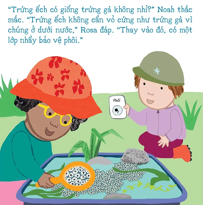 Nếu có cơ hội được nhìn thấy những quả trứng ếch bé tí xíu, bạn hãy thử như nhóm bạn của Rosa, cùng quan sát xem vòng đời của ếch sẽ diễn ra như thế nào nhé! Từ những buồng trứng nhỏ chứa những hạt trứng li ti, những chú nòng nọc ra đời, trải qua quá trình biến đổi để trở thành những chú ếch đáng yêu. Ta sẽ học thêm được nhiều kiến thức sinh học bổ ích qua thí nghiệm quan sát này đấy! Hãy cùng khám phá với Rosa nhé!