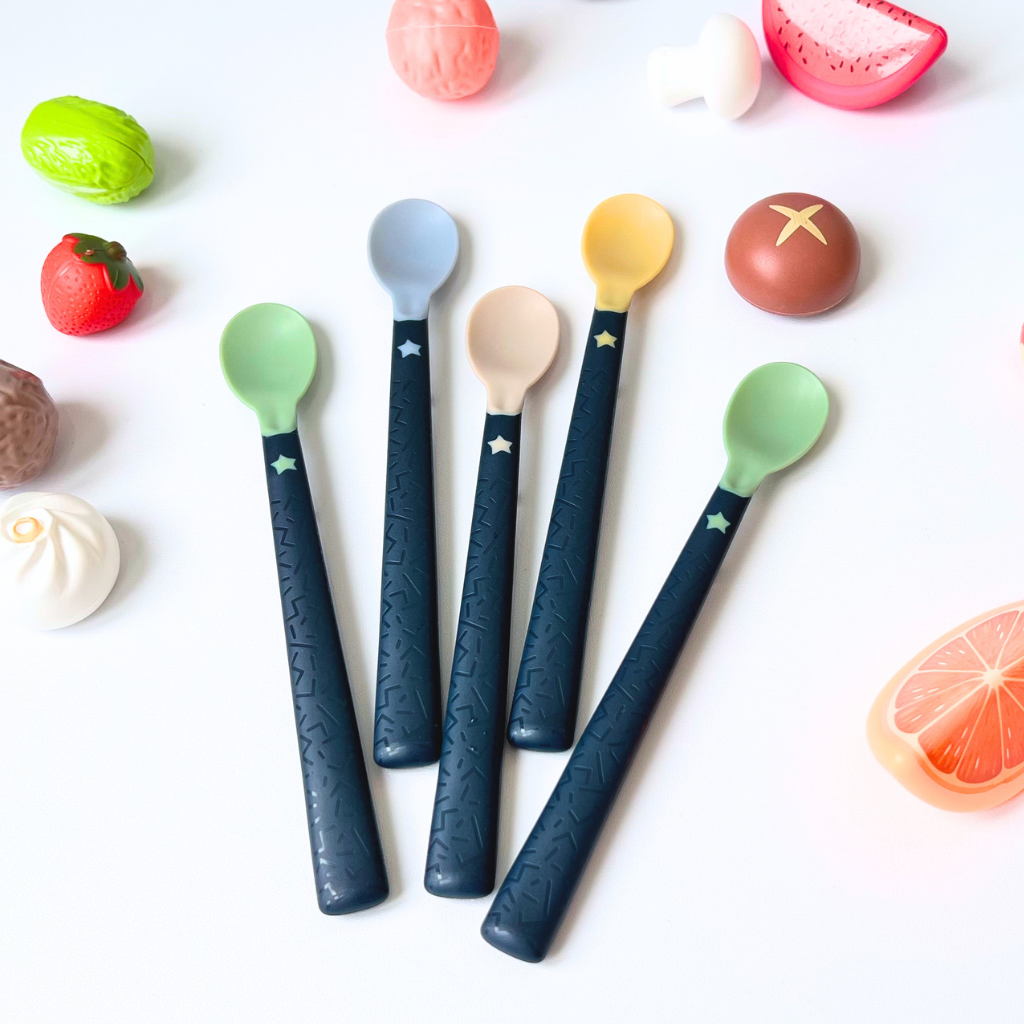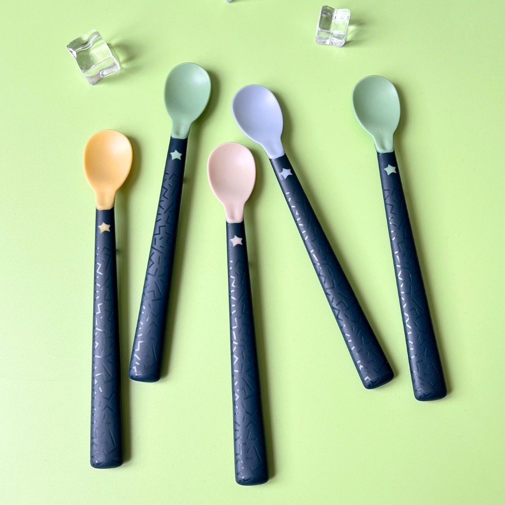 Cán thìa dài có bề mặt chống trượt giúp mẹ có thể để thìa trên thành bát mà không bị trượt rơi xuống