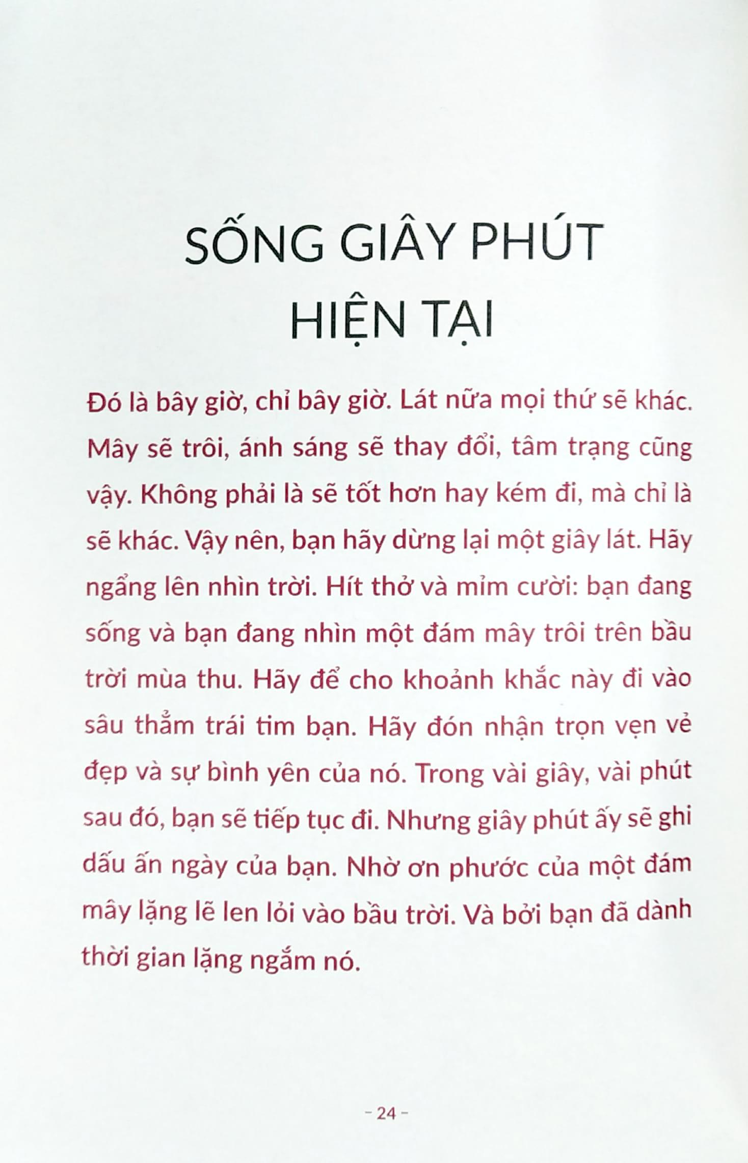1/Chánh niệm trong từng khoảnh khắc Làm sao để ta có thể tận dụng tối đa thời gian của bản thân, sống một cuộc đời có mục đích, phẩm giá và được mọi người ủng