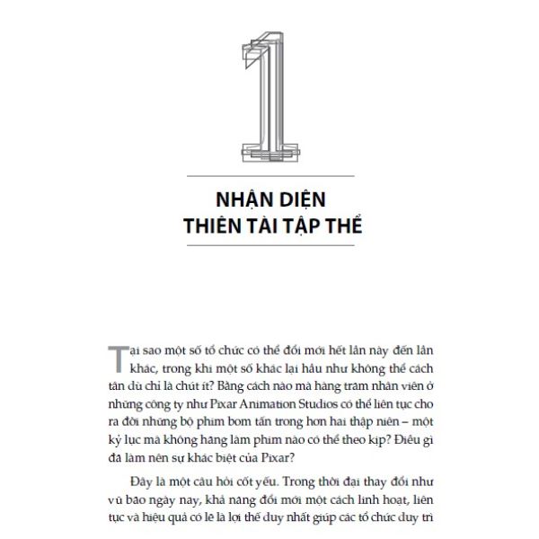 Bằng cách nào mà hàng trăm nhân viên ở những công ty như Pixar Animation Studios có thể liên tục cho ra đời những bộ phim bom tấn trong hơn hai thập niên – một kỉ lục mà không hãng làm phim nào có thể theo kịp? Điều gì đã giúp Pixar trở thành một công ty sở hữu bề dày lịch sử đổi mới sáng tạo đáng gờm?