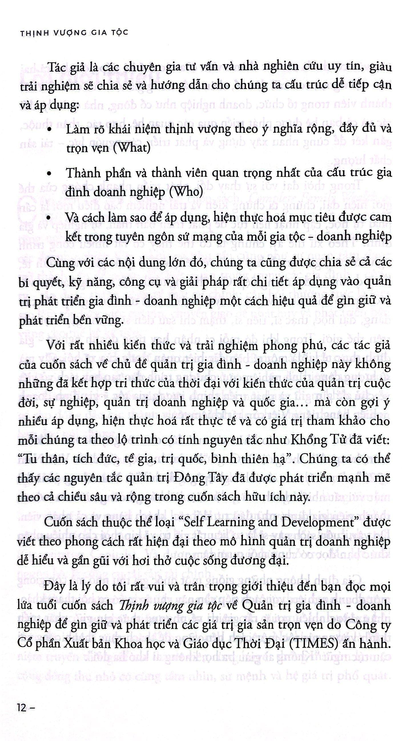 Mua tại TiktokThịnh Vượng Gia Tộc (Bìa mềm) Thịnh vượng gia tộc giúp chúng ta phát triển, duy trì và quản lý tài sản qua các thế hệ. Cuốn sách là tập hợp những hướng dẫn được cập nhật và mở rộng để thay đổi cách bạn nghĩ về sự giàu có và di sản của m.ình. Cuốn sách còn cung cấp câu trả lời bạn cần cùng với hướng dẫn và chiến lược để giữ nguyên khối tài sản của gia đình bạn. Thịnh vượng gia tộc cung cấp tư duy mới nhất về thịnh vượng, những ý tưởng và thực hành có ý nghĩa lâu dài để các gia đình duy trì, phát triển và quản lí tài sản qua các thế hệ. Cuốn sách là tập hợp những hướng dẫn được cập nhật và mở rộng để thay đổi cách chúng ta nghĩ về thịnh vượng và di sản của m.ình. Thịnh vượng đích thực vượt lên trên tiền bạc đơn thuần, bao gồm 6 loại gia sản: