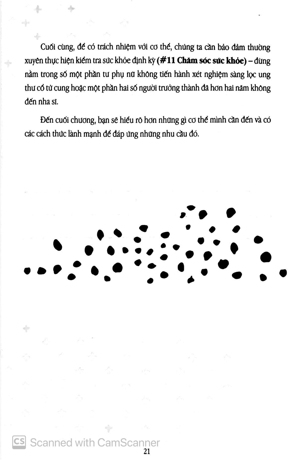 Nếu bạn không rõ phải bắt đầu từ đâu thì theo tôi, ba chương đầu tiên (Cơ thể, Tâm trí và Cảm xúc) là ba chương “căn bản” giúp bạn có được nền tảng vững chắc để thực hành chăm sóc bản thân.