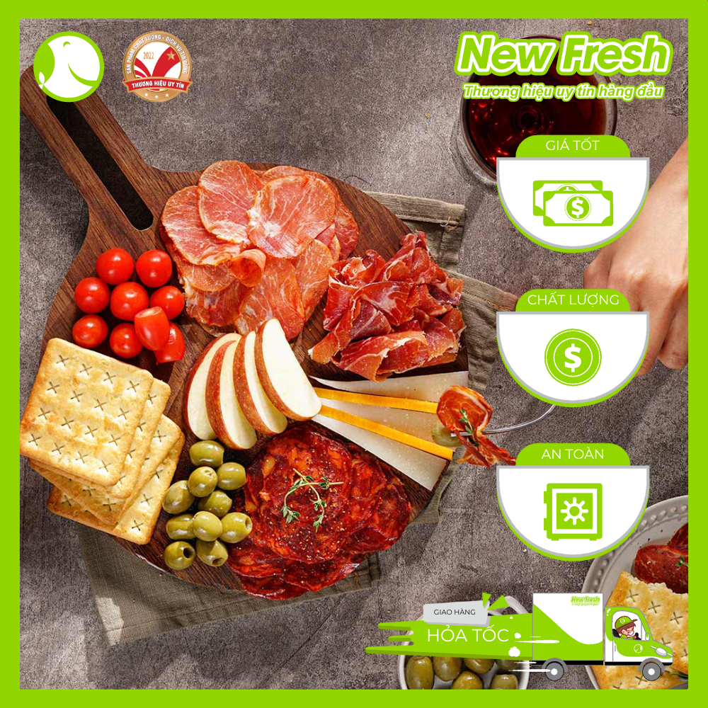 - Hướng dẫn sử dụng: Dùng ngon nhất với rượu vang, các loại phô mai, bánh quy, trái oliu, dưa lưới, hoặc các món salad,… Thịt đùi sau Serrano là loại thịt chất lượng được làm từ giống heo đen Iberico tại Tây Ban Nha. Món ăn này là loại thịt đặc biệt đã trở thành món khoái khẩu của những người sành ăn nhờ hương vị tinh tế, tính linh hoạt và dinh dưỡng dồi dào. Cùng New Fresh tìm hiểu thịt heo muối thượng hạng này nhé! Thịt đùi sau Serrano cắt lát mỏng tiện lợi THÔNG TIN SẢN PHẨM ĐÙI HEO SERRANO CẮT LÁT Thịt đùi sau Serrano muối cắt lát (Serrano ham sliced) là một sản phẩm thịt heo muối đông lạnh được sản xuất tại Tây Ban Nha. Đây là một sản phẩm thịt heo Serrano chất lượng cao, được muối trong một thời gian dài để giữ cho thịt tươi và tăng cường hương vị. Sau đó, sản phẩm này được cắt lát và đóng gói trong bao bì tiện lợi. Đùi sau Serrano cắt lát có chất béo từ bắp thịt vừa thơm ngon, vừa tốt cho sức khỏe cung cấp một lượng sắt, protein, vitamin và chất chống oxy hóa tự nhiên, giúp cân bằng và giàu chất dinh dưỡng. Sản phẩm Thịt đùi sau Serrano - gói cắt lát chất lượng, vô cùng tiết kiệm và tiện lợi dành cho khách hàng. Thịt đùi sau Serrano - gói cắt lát 50gr HƯỚNG DẪN SỬ DỤNG ĐÙI SAU IBERICO BELLOTA KHÔNG XƯƠNG Đùi Iberico Serrano cắt lát có trọng lượng 50g/ gói dùng được 1 - 2 người. Nếu sử dụng sản phẩm không hết, chỉ cần gấp miệng túi thật kín hoặc bọc màng thực phẩm bảo quản ở ngăn mát tủ lạnh. Để đảm bảo được mùi vị nên dùng trong 3 ngày. Khi mua về, để thịt ở bên ngoài nhiệt độ bình thường từ 10-15 phút cho thịt mềm rồi thưởng thức. Có thể được sử dụng cho nhiều món ăn khác nhau, từ món truyền thống đến ẩm thực hiện đại, bạn có thể dùng với rượu vang đỏ và các món ăn kèm như phô mai, oliu, bánh mì và salad để tăng mức độ cảm nhận. Thịt đùi sau Serrano túi 100gr tại New Fresh