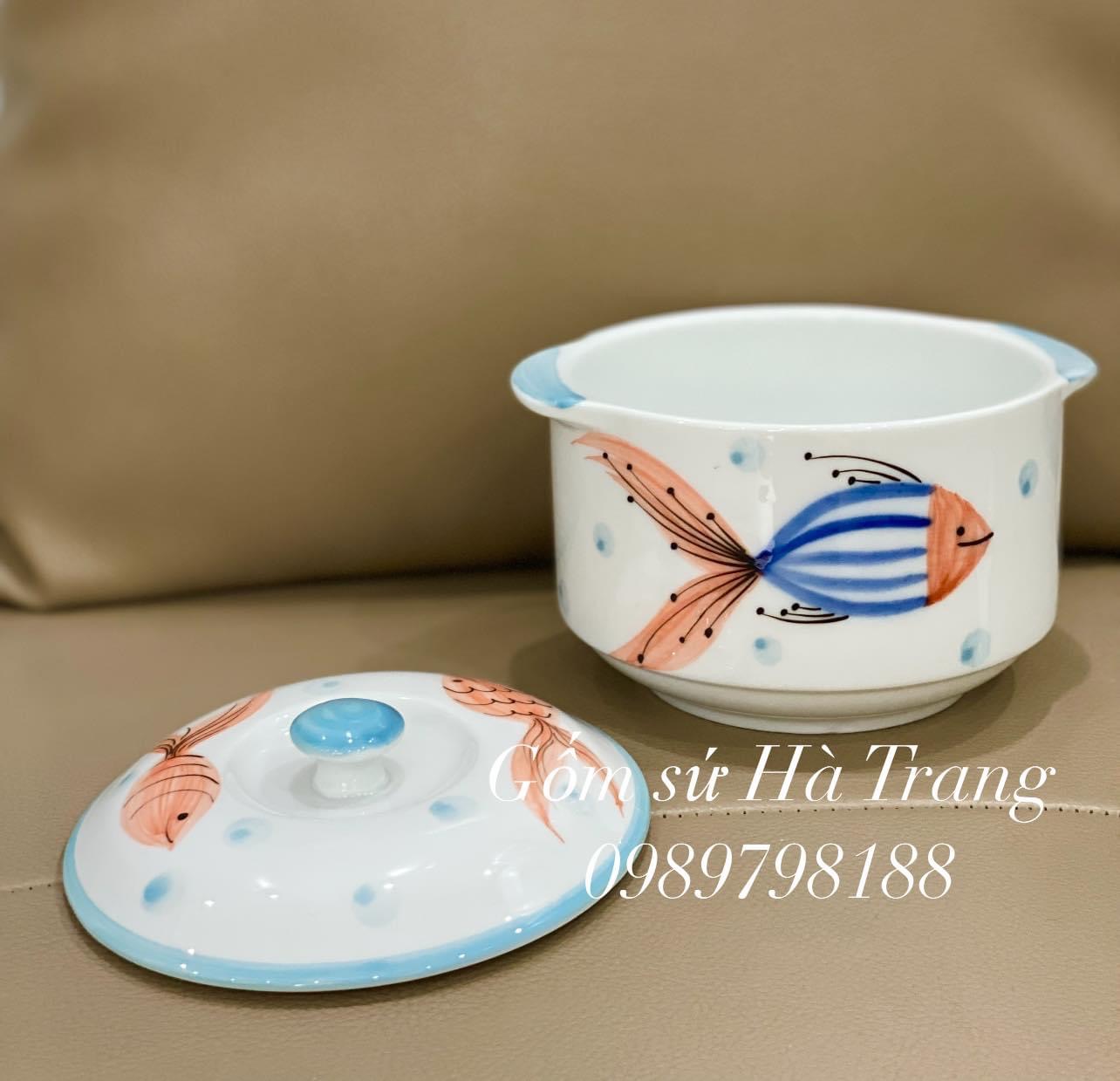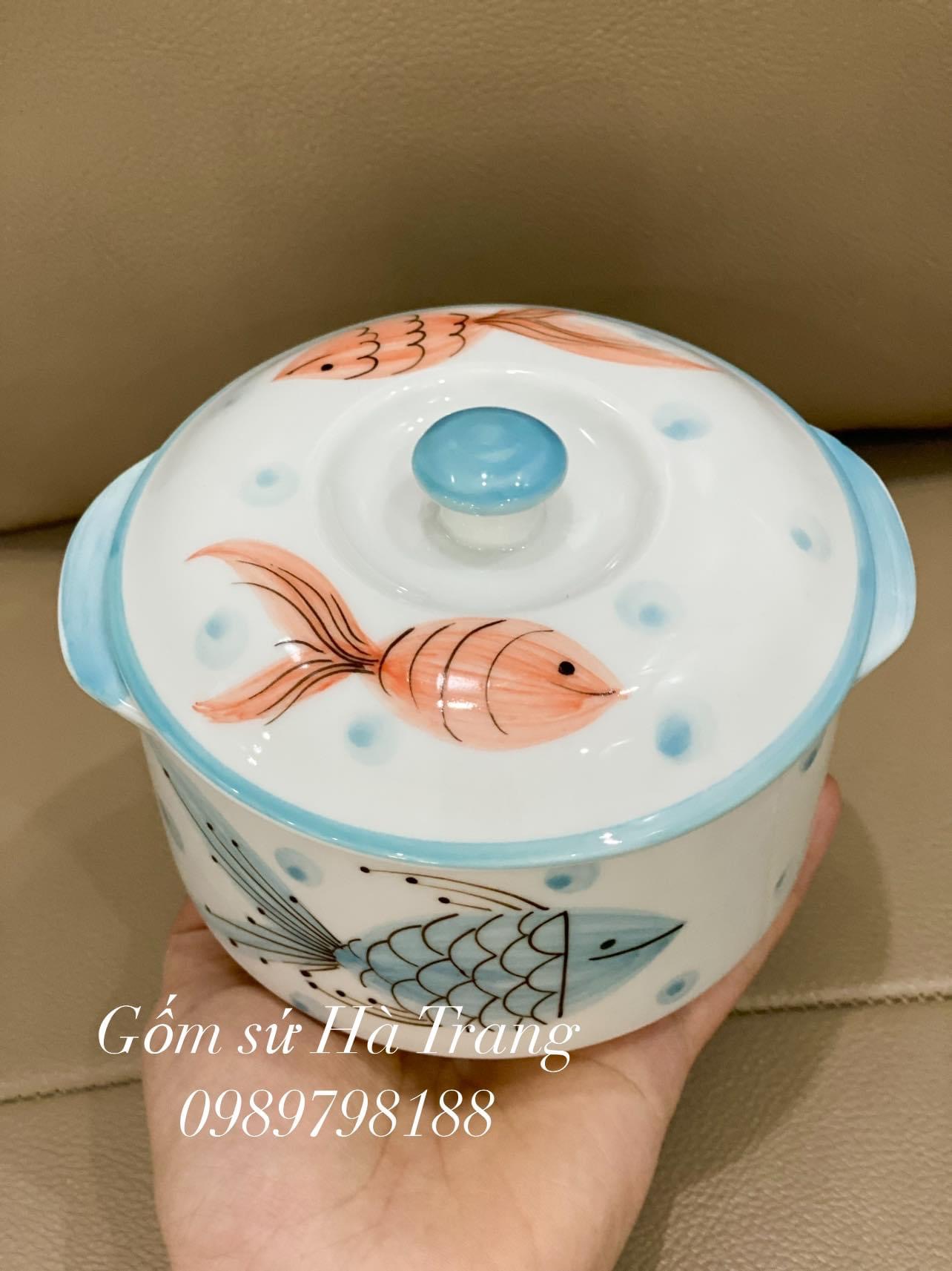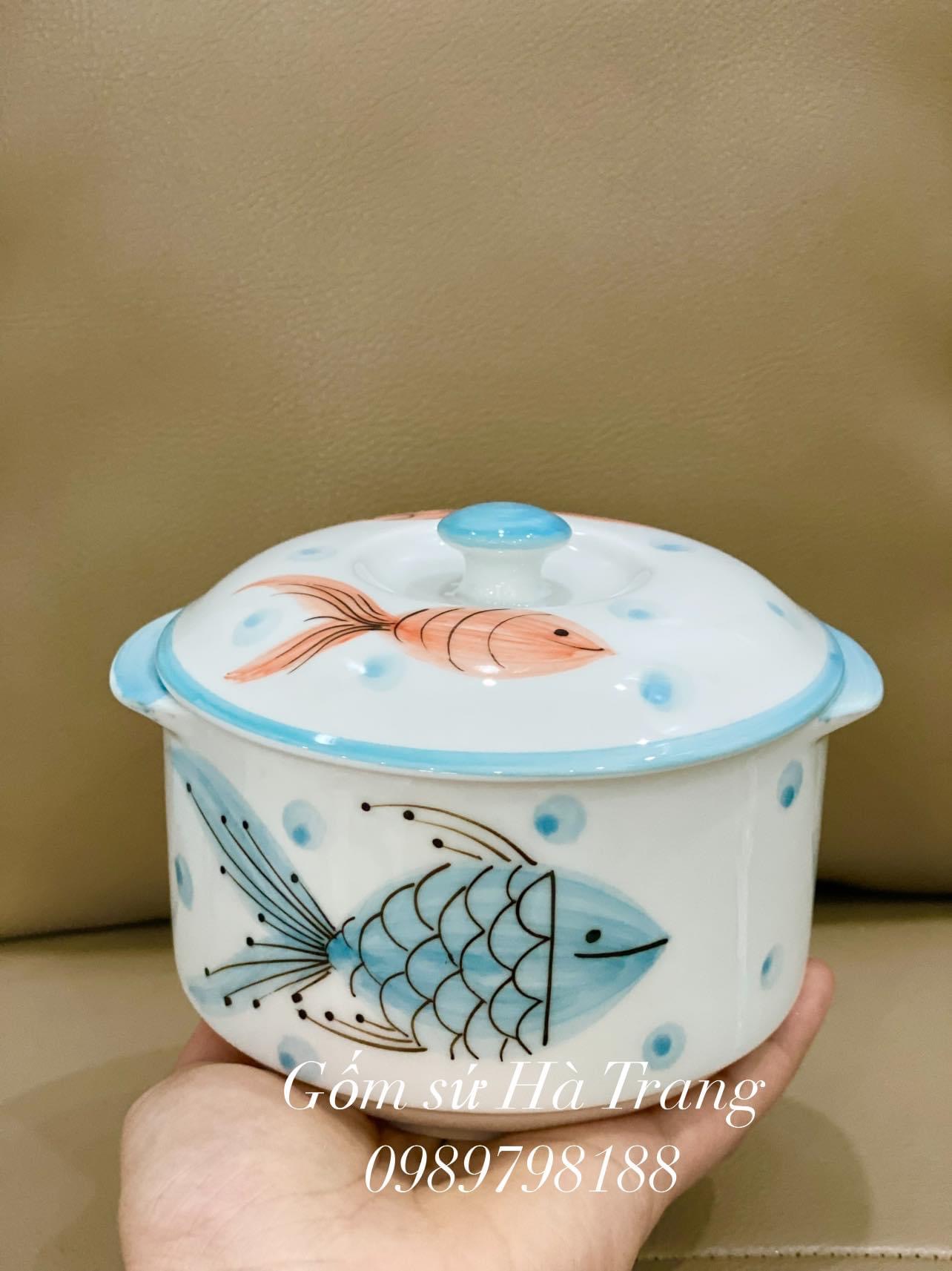 ✨Thố chưng yến gốm sứ Bát Tràng cao cấp vẽ tay hoạ tiết cá dung tích 600ml