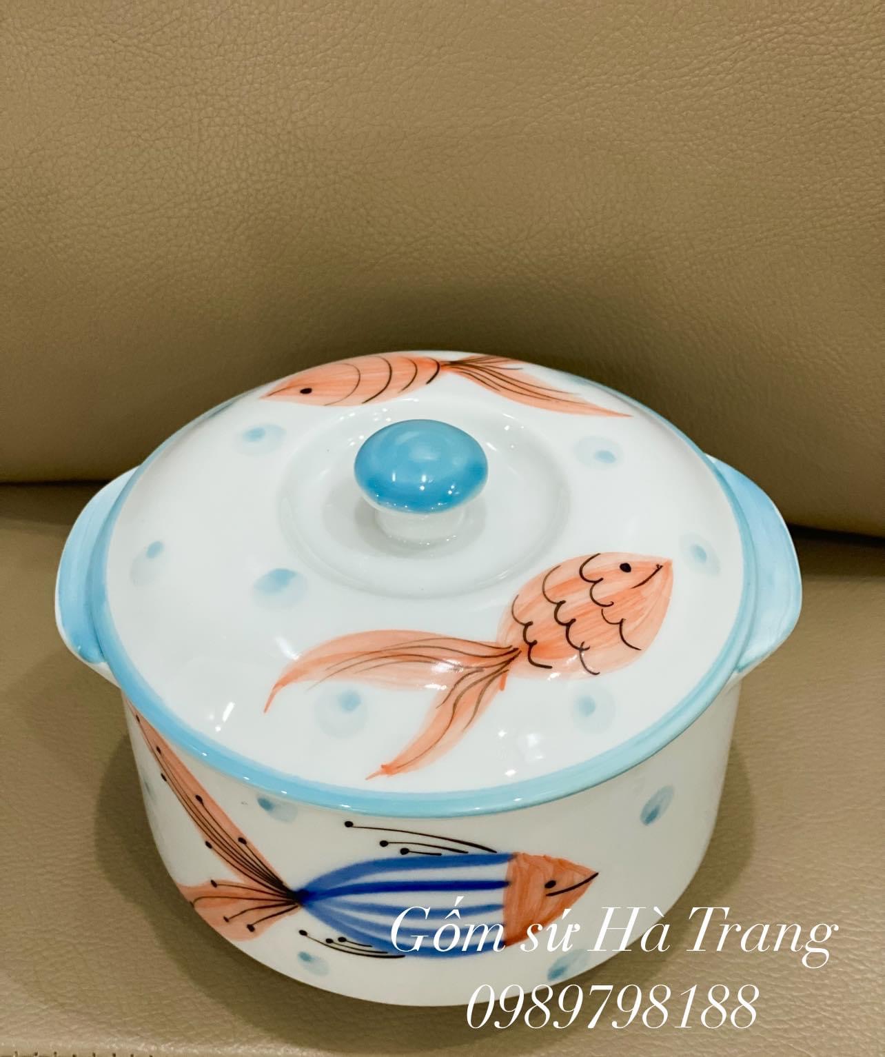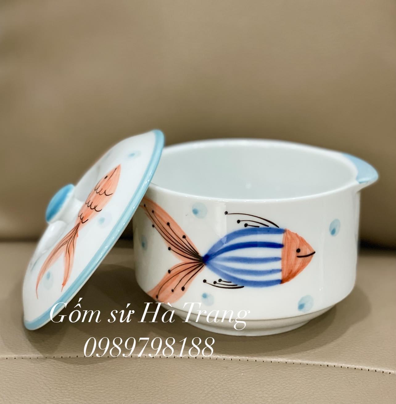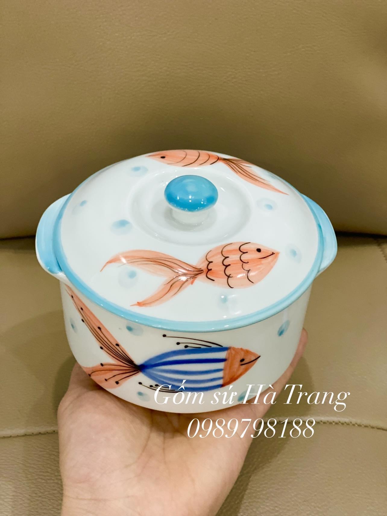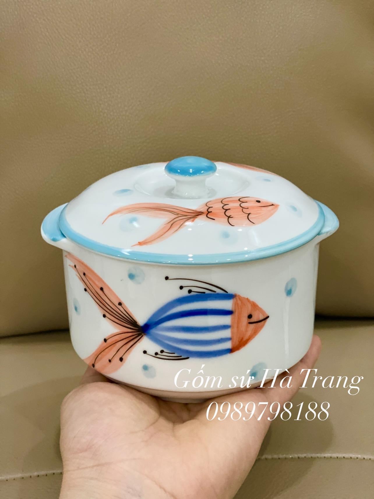 ✨Thố chưng yến gốm sứ Bát Tràng cao cấp vẽ tay hoạ tiết cá dung tích 600ml