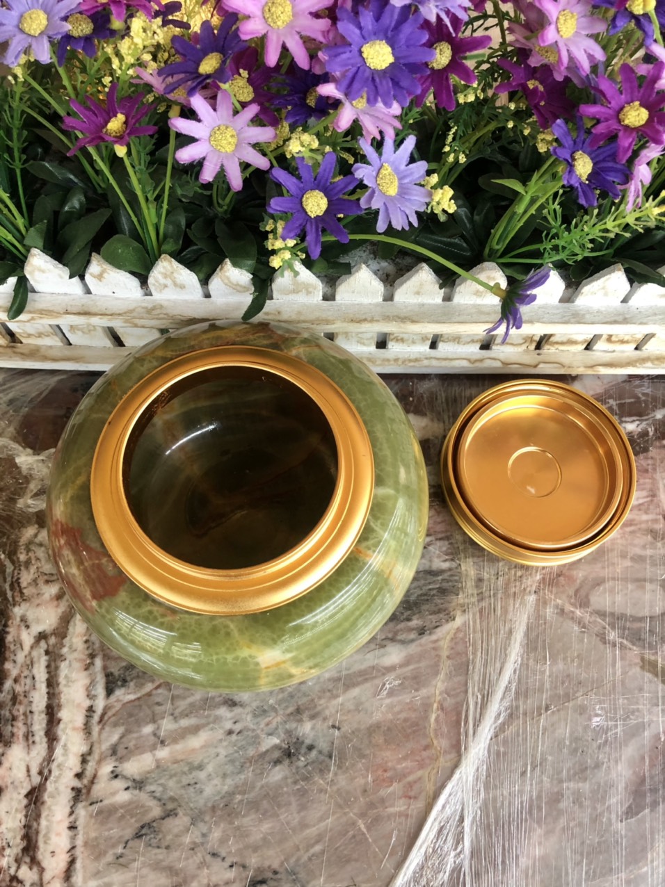 Hũ trà bằng ngọc onyx vàng