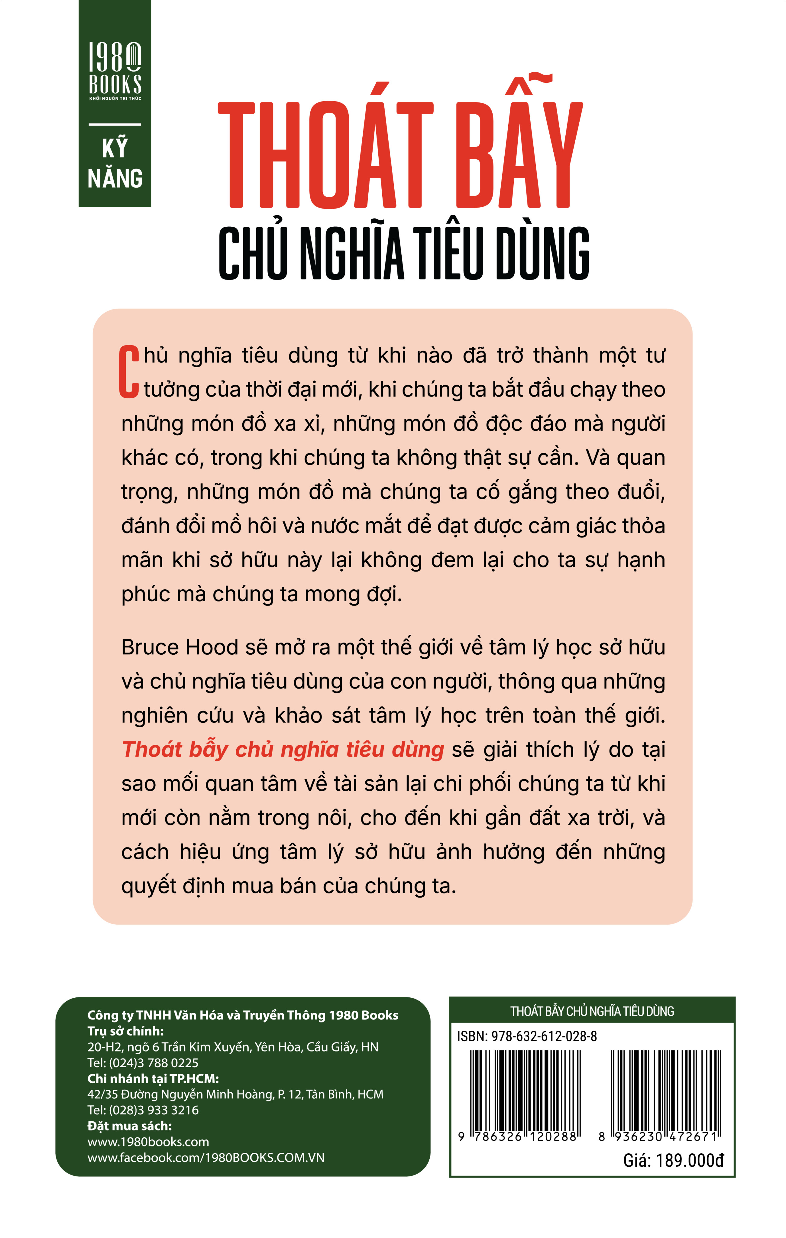 “Thoát bẫy chủ nghĩa tiêu dùng” của Bruce Hood là một cuốn sách đi sâu vào gốc rễ tâm lý chi phối hành vi tiêu dùng hiện đại, giúp độc giả hiểu vì sao chúng ta luôn muốn sở hữu nhiều hơn những gì mình cần, đồng thời gợi mở cách sống hạnh phúc và bền vững hơn trong xã hội vật chất hiện nay.