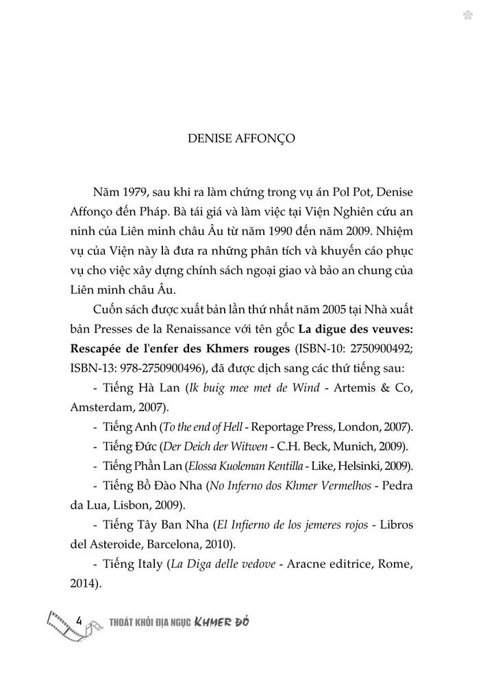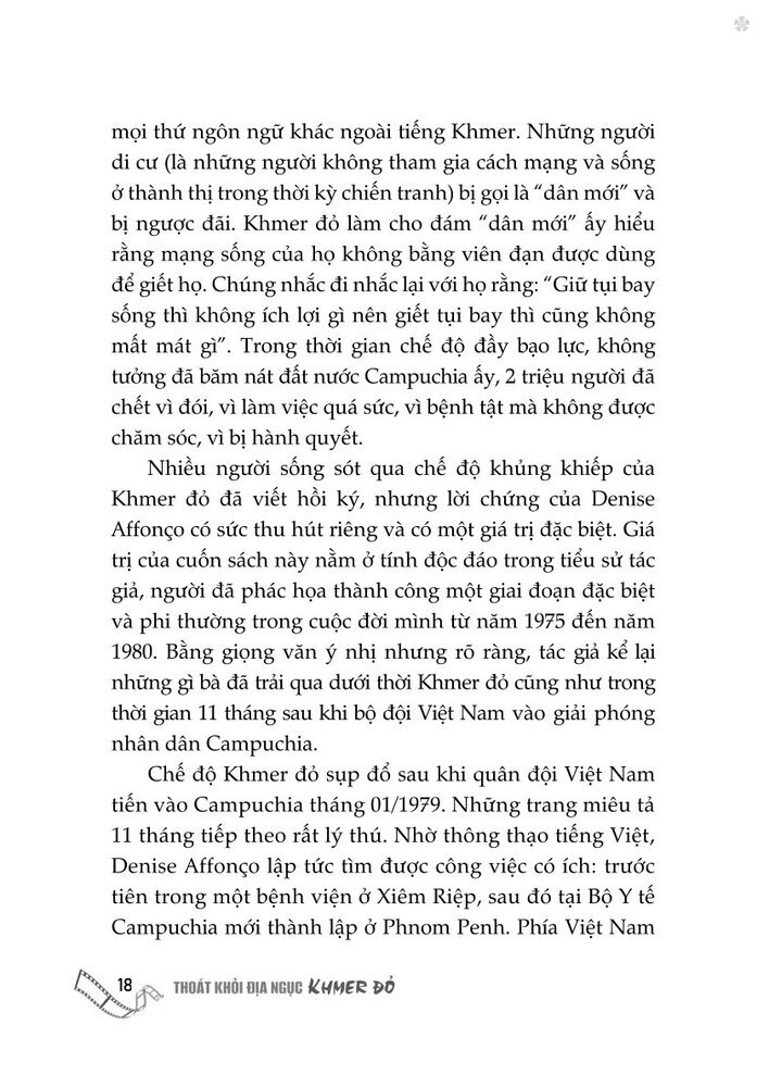 Mua tại TiktokCuốn sách Thoát khỏi địa ngục Khơmer đỏ - Hồi ký của một người còn sống là cuốn hồi ký đẫm nước mắt viết về những tháng năm kiệt quệ cả về thể xác lẫn tinh thần mà Denise Affonco đã phải trải qua.