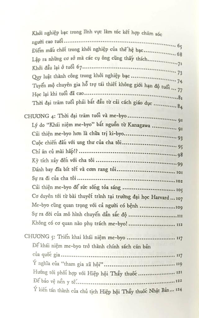 Nhật Bản đang chuẩn bị bước vào kỷ nguyên xã hội siêu già hóa, với số lượng người cao tuổi nhiều nhất từ trước đến nay, dự kiến đến năm 2050, cứ 142 người Nhật sẽ có 1 người trên 100 tuổi, đây là một thách thức rất lớn cho toàn xã hội, đặc biệt là hệ thống phúc lợi, y tế và bảo hiểm. Để chuẩn bị cho tương lai này, với cương vị là Thống đốc tỉnh Kanagawa, tác giả Kuroiwa Yuji đã đưa ra rất nhiều thảo luận, trong đó tập trung vào khái niệm me-byo, một trạng thái ở giữa khỏe mạnh và bệnh tật. Trong cuốn sách này, ông chia sẻ về khái niệm me-byo, cũng như khuyến khích thay đổi lối sống và tạo dựng một hệ thống xã hội phù hợp nhằm cải thiện trạng thái me-byo của cá nhân cũng như toàn xã hội, từ đó chuẩn bị cho “thời đại trăm tuổi” trong tương lai không xa.