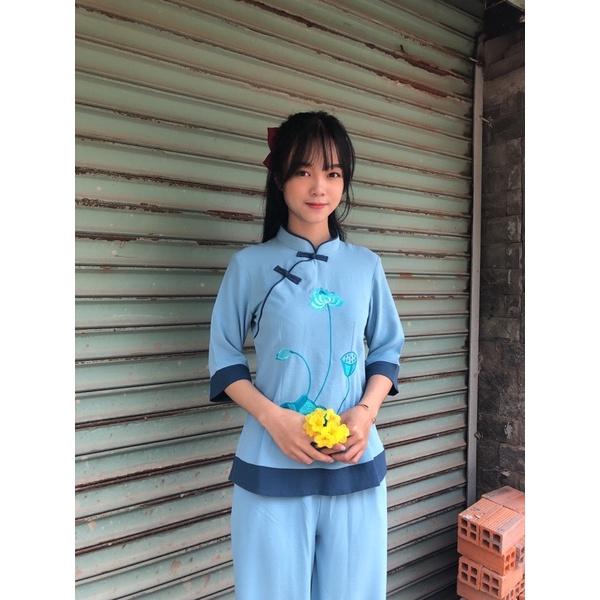 ✨thời trang nữ cổ tàu đi chùa, áo lam truyền thống cao cấp
