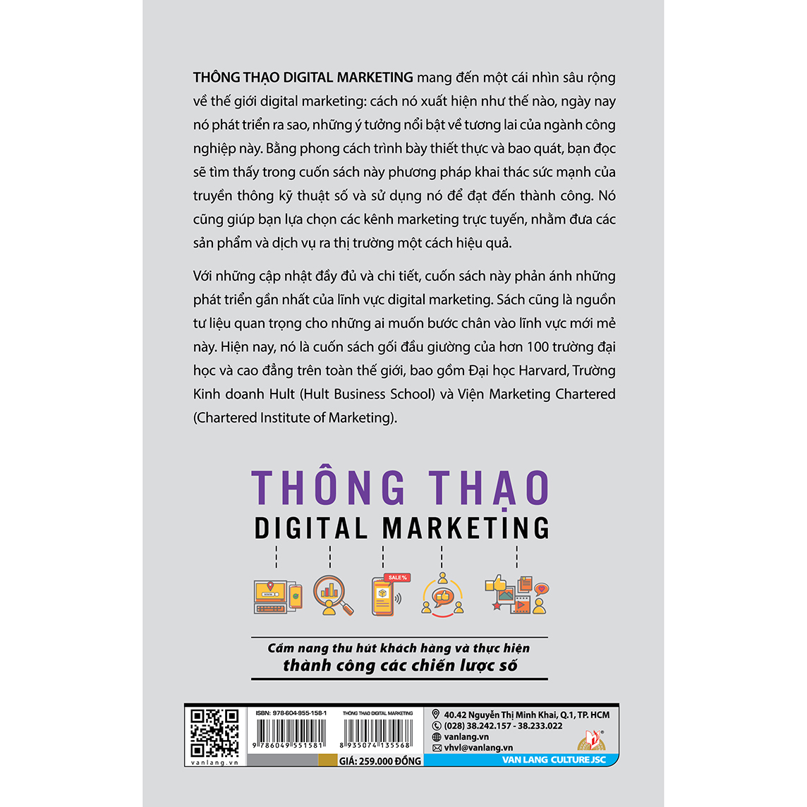 THÔNG THẠO DIGITAL MARKETING mang đến một cái nhìn sâu rộng về thế giới digital marketing: cách nó xuất hiện như thế nào, ngày nay nó phát triển ra sao, những ý tưởng nổi bật về tương lai của ngành công nghiệp này. Bằng phong cách trình bày thiết thực và bao quát, bạn đọc sẽ tìm thấy trong cuốn sách này phương pháp khai thác sức mạnh của truyền thông kỹ thuật số và sử dụng nó để đạt đến thành công. Nó cũng giúp bạn lựa chọn các kênh marketing trực tuyến, nhằm đưa các sản phẩm và dịch vụ ra thị trường một cách hiệu quả.