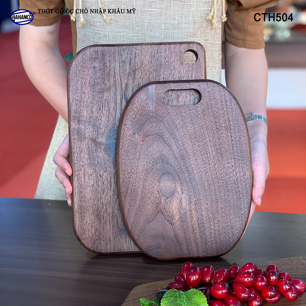 ✨Thớt gỗ óc chó nhập khẩu Mỹ liền khối (hình bầu dục lỗ dài) trang trí bàn ăn/ khay bánh mì/trái cây tráng miệng/bít tết/ Kê Thức Ăn Khi Thái/Pizza/Decor/chụp ảnh sản phẩm - CTH504