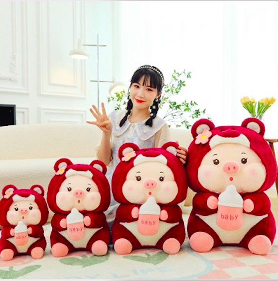 ✨Thú nhồi bông heo ôm bình sữa cosplay lotso- Size từ 35cm đến 55cm - Quà tặng heo ôm bình sữa cosplay lotso nhồi bông dễ thương - Gối ôm mềm mịn cho bé