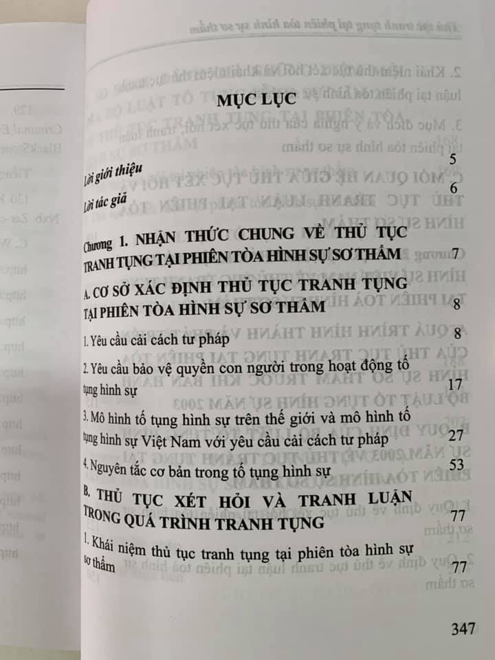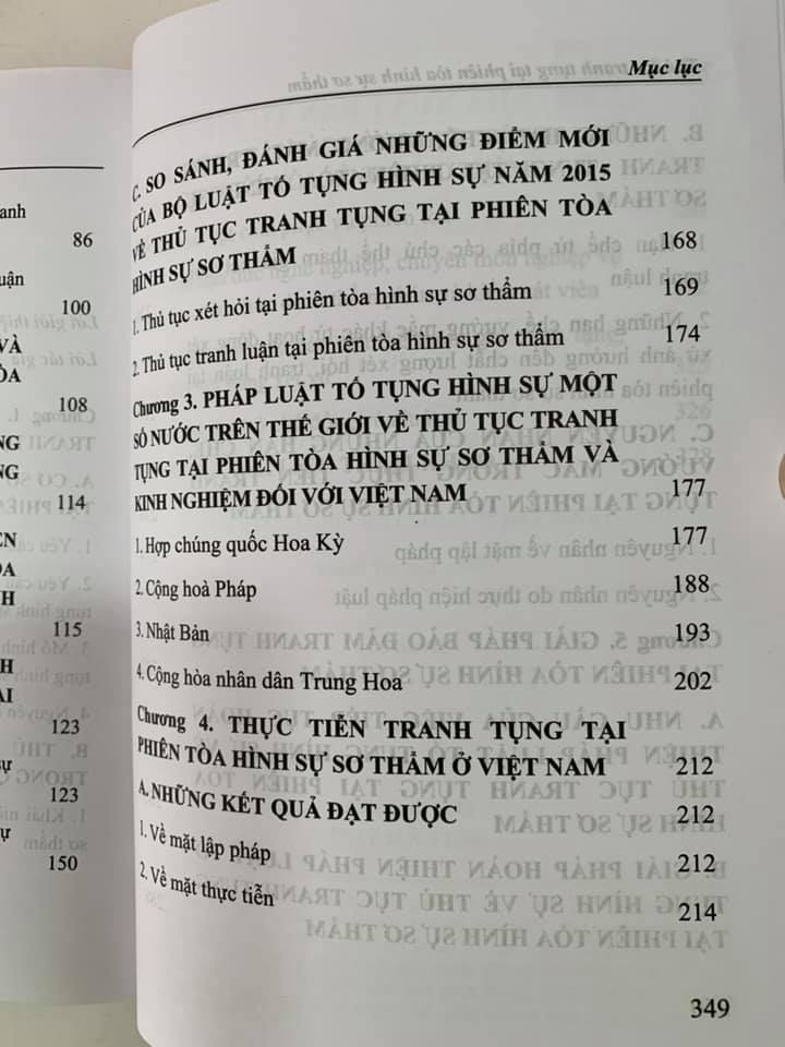 Tại Chương này, tác giả đã khái quát đặc điểm của mô hình tố tụng hình sự và thủ tục tranh tụng ở một số quốc gia như Hoa Kỳ, Pháp, Nhật Bản và Trung Quốc.