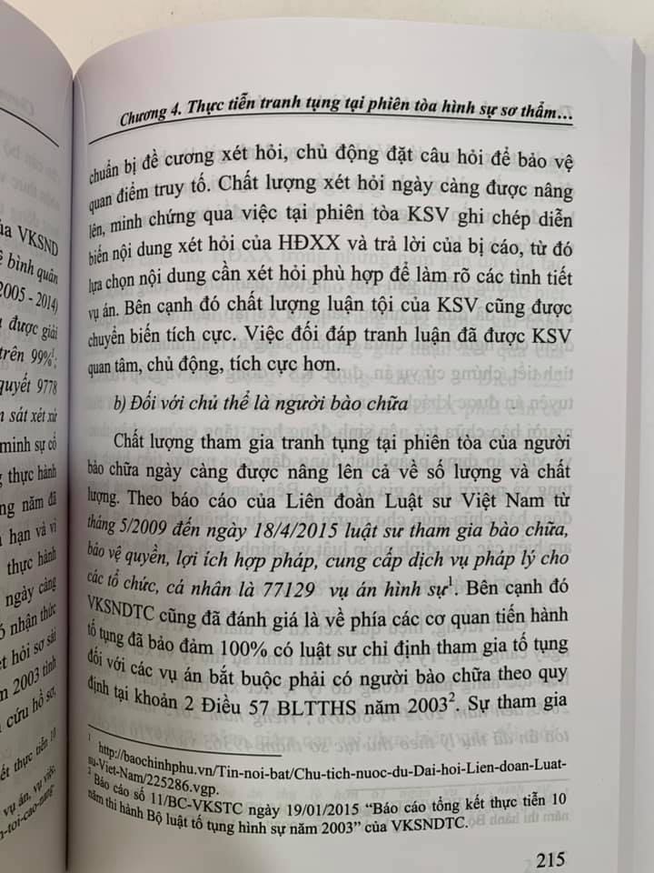 Chương 4. Thực tiễn tranh tụng tại phiên tòa hình sự sơ thẩm ở Việt Nam