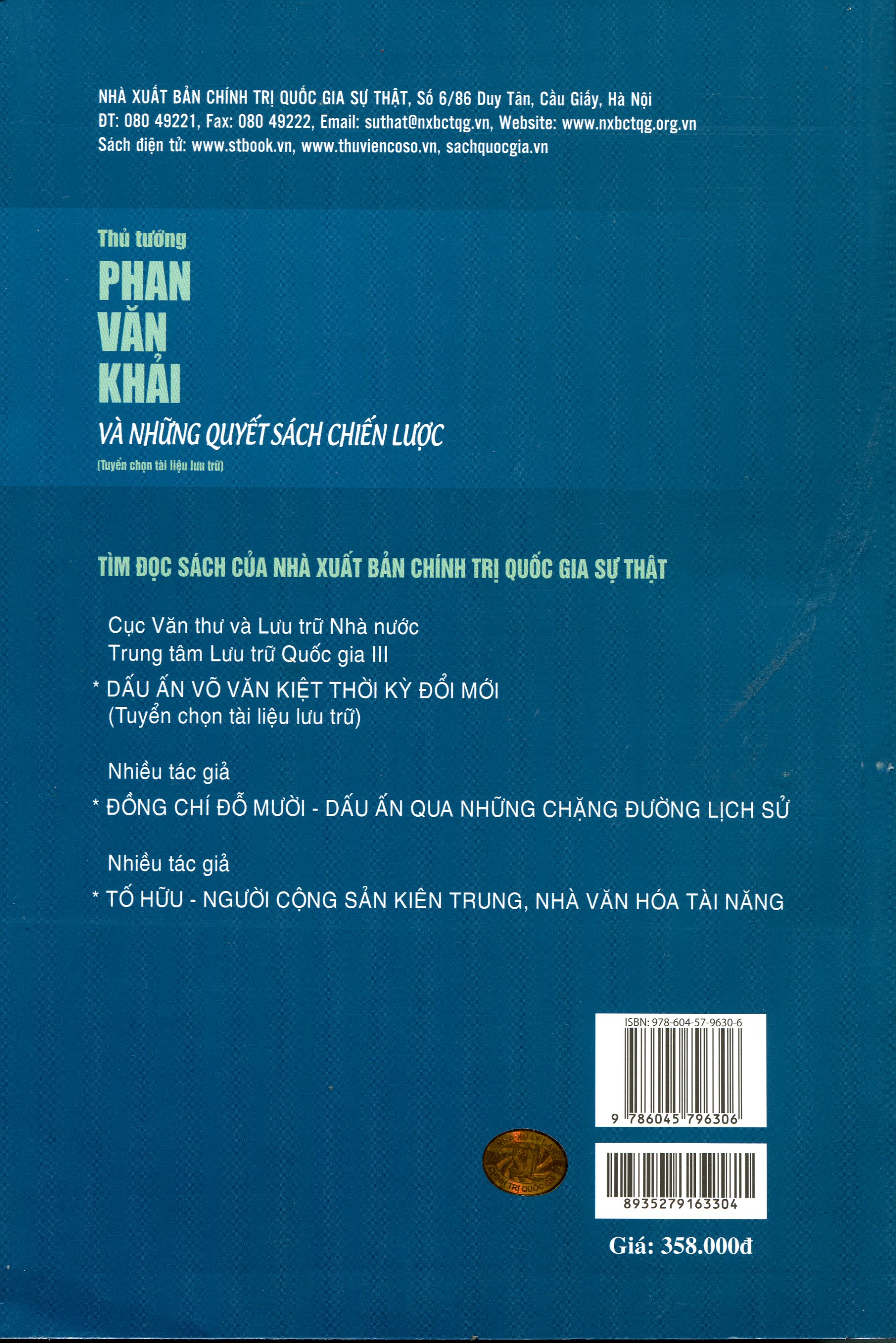 Nhằm làm rõ những quyết sách chiến lược và đóng góp của đồng chí Phan Văn Khải vào thành tựu chung của đất nước, Nhà xuất bản Chính trị quốc gia Sự thật tái bản cuốn sách Thủ tướng Phan Văn Khải và những quyết sách chiến lược (Tuyển chọn tài liệu lưu trữ).