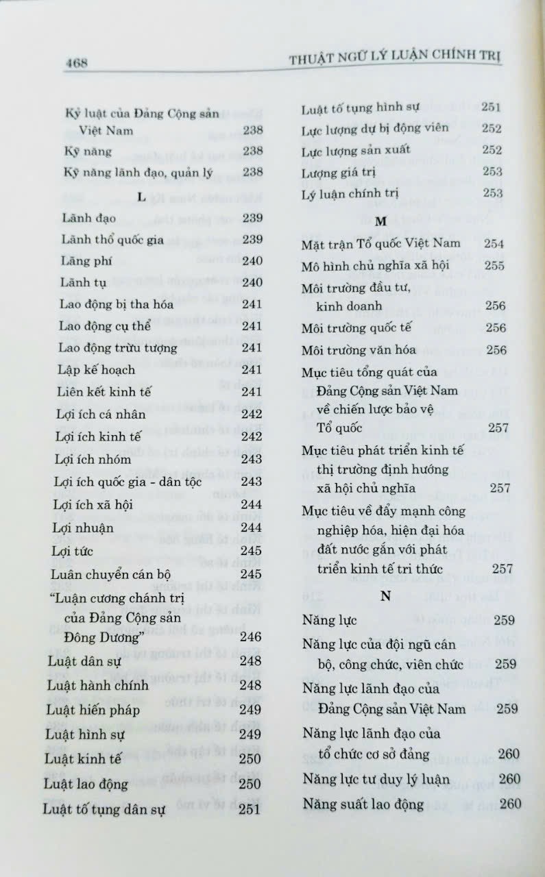 Với mục đích trang bị những kiến thức cơ bản về lĩnh vực lý luận chính trị, xây dựng công cụ tra cứu phục vụ quá trình học tập và nghiên cứu của bạn đọc, với cách trình bày có hệ thống, cuốn sách Thuật ngữ lý luận chính trị của TS. Nguyễn Đình Thuận -Hiệu trưởng Trường Chính Trị Đà Nẵng đã giải thích thông tin về các thuật ngữ lý luận chính trị theo hướng ngắn gọn, dễ hiểu các mục từ cơ bản về các quan điểm, chủ trương của Đảng, chính sách, pháp luật của Nhà nước, các từ thông dụng trong các ngành lý luận chính trị như triết học Mác - Lênin, kinh tế chính trị Mác - Lênin, chủ nghĩa xã hội khoa học, về hệ thống chính trị, nhà nước và pháp luật…