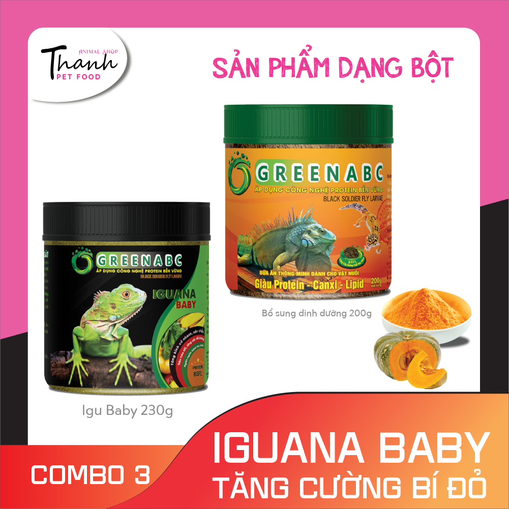 GREENABC - THỨC ĂN IGUANA BABY VỊ BÍ ĐỎ - Rồng Nam Mỹ Baby vị Bí Đỏ từ mới nở đến 9x. GREENABC là thức ăn cao cấp dành cho Iguana Baby - Rồng Nam Mỹ Baby Đặc biệt sản phẩm GREENABC được sản xuất the...