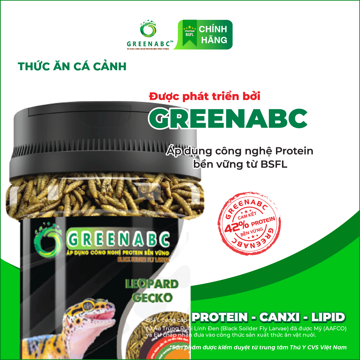 Mua tại TiktokGREENABC - THỨC ĂN DÀNH CHO THẰN LẰN DA BÁO - BỔ SUNG DINH DƯỠNG PROTEIN - CANXI - LIPID GREENABC là thức ăn bổ dưỡng dành cho THẰN LẰN DA BÁO. Đặc biệt sản phẩm GREENABC được sản xuất theo phương pháp Áp dụng công nghệ PROTEIN bền vững rất giàu PROTEIN – CANXI – LIPID có trong BSFL, đã được Mỹ (AAFCO) và EU chấp nhận đưa vào công thức cho ngành sản xuất thức ăn dành cho vật nuôi. Sản phẩm GREENABC cung cấp các giá trị dinh dưỡng bền vững cho vật nuôi, giúp cho Thằn Lằn Da Báo: