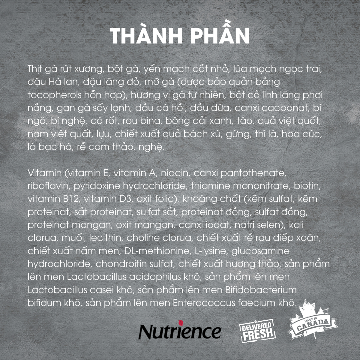 Nutrience Original Adult, Medium Breed cho Giống Chó Trung Bình được phát triển để đáp ứng các mức dinh dưỡng được thiết lập bởi hồ sơ dinh dưỡng thức ăn cho chó của AAFCO về duy trì sức khỏe toàn diện.