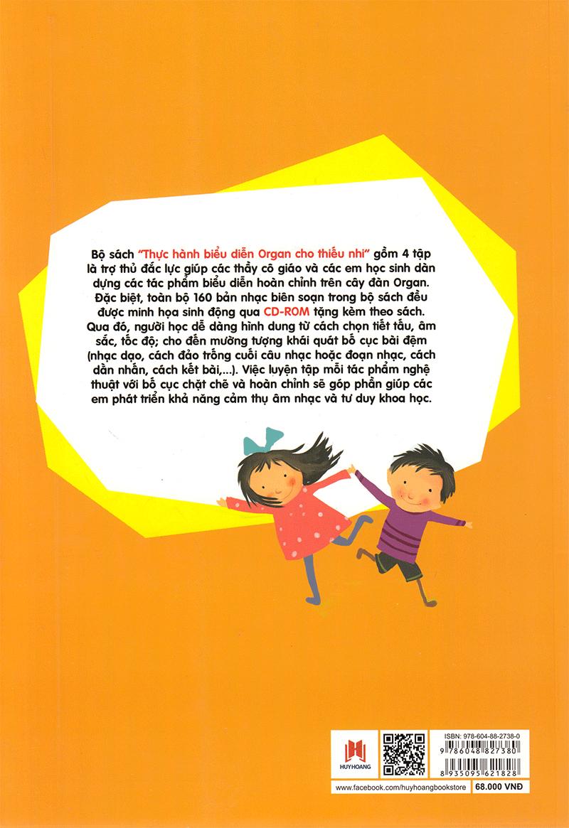 Bộ sách Thực hành biểu diễn organ cho thiếu nhi gồm 4 tập là trợ thủ đắc lực giúp các thầy cô giáo và các em học sinh dàn dựng các tác phẩm biểu diễn hoàn chỉnh trên cây đàn Organ. Đặc biệt, toàn bộ 160 bản nhạc biên soạn trong bộ sách đều được minh họa sinh động qua CD-ROM tặng kèm theo sách.