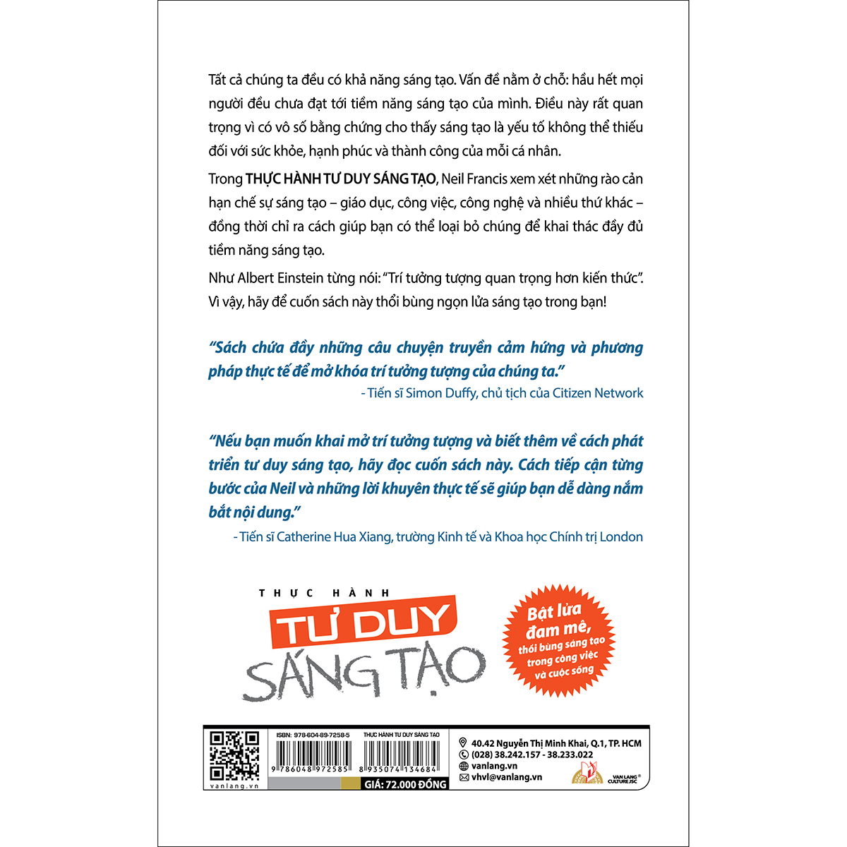 Trong THỰC HÀNH TƯ DUY SÁNG TẠO, Neil Francis xem xét những rào cản hạn chế sự sáng tạo – giáo dục, công việc, công nghệ và nhiều thứ khác – đồng thời chỉ ra cách giúp bạn có thể loại bỏ chúng để khai thác đầy đủ tiềm năng sáng tạo.