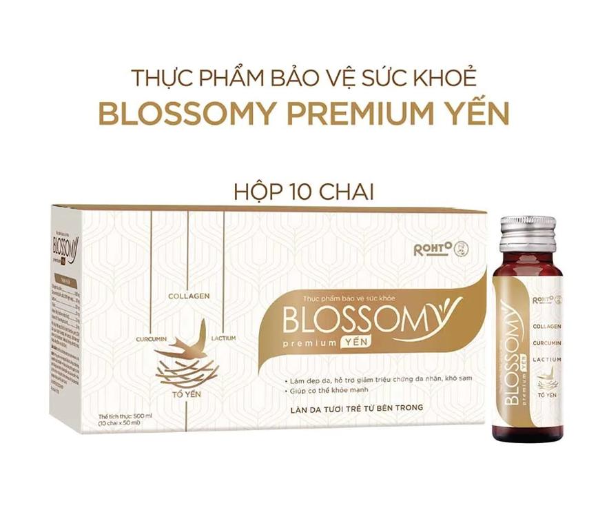 - Thực Phẩm Bảo Vệ Sức Khỏe Blossomy Premium Yến Làn Da Tươi Trẻ Từ Bên Trong 50ml x 10 Chai luôn đồng hành cùng nàng mỗi ngày trên chặng đường chăm sóc sức khỏe và sắc đẹp toàn diện từ bên trong.