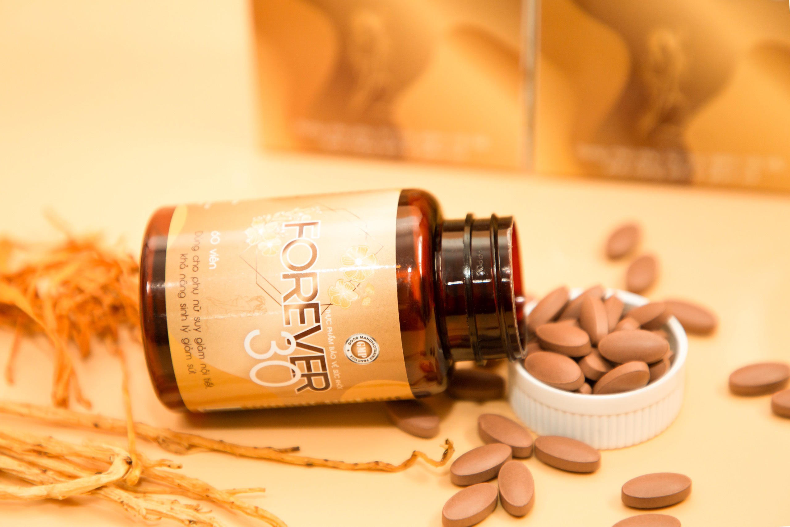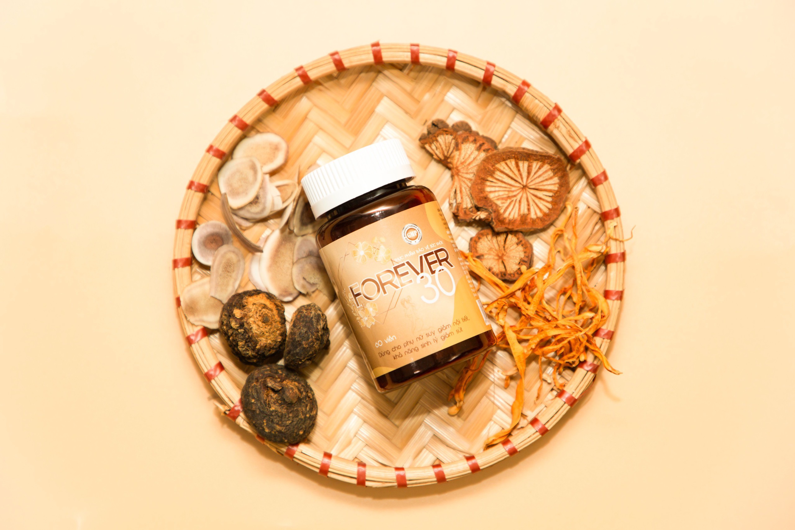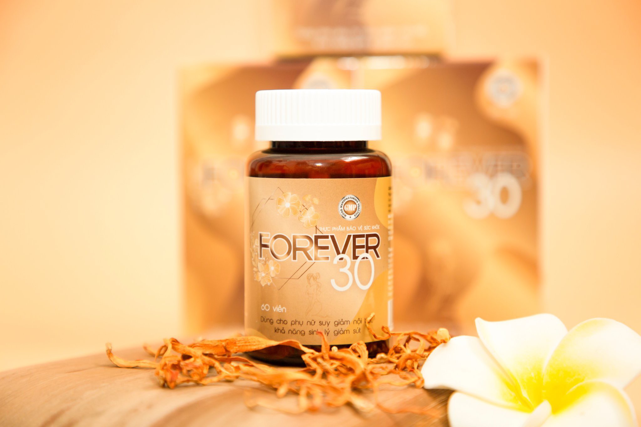 Từ những nghiên cứu chuyên sâu về các loại thảo dược, các tiến sĩ, chuyên gia đầu ngành đã đưa ra công thức có trong TPBVSK Forever30. Với thành phần chiết xuất từ các thảo dược thiên nhiên như: ích mẫu, đương quy, xuyên khung, đảng sâm … và đặc biệt là chiết xuất 2 thảo dược vô cùng giá trị là Nhân sâm Peru và Thiên môn chùm. Đặc biệt, với hoạt chất Arginine chiết xuất trong nhân sâm Peru hỗ trợ tăng cường hoạt động của tuyến yên và buồng trứng, nuôi dưỡng chức năng buồng trứng, làm khỏe từng tế bào trứng, khi tế bào trứng khỏe dẫn đến hiện tượng rụng trứng và phóng noãn đều, giúp kéo dài thời kỳ sinh sản của phụ nữ, làm chậm lại thời kỳ tiền mãn kinh. Thiên Môn Chùm được coi là “Nữ hoàng của các loại thảo mộc”. Tên khác là Shatavari mang ý nghĩa “Người phụ nữ sở hữu một trăm người chồng”. Thiên môn chùm chứa nhiều dưỡng chất, đặc biệt là Isoflavone và Phytoestrogen (chất có hoạt tính giống estrogen). Phytoestrogen giúp cân bằng lượng estrogen, tăng cường chức năng sinh lý của hệ sinh dục nữ, tuyến yên, tuyến vú, buồng trứng và một số cơ quan khác. Isoflavone có tác dụng điều hòa chu kỳ rụng trứng, tăng ham muốn tình dục, làm ẩm các mô khô của vùng kín, trẻ hóa tử cung, hỗ trợ điều trị huyết trắng và rong kinh. Ngoài tác dụng cải thiện nội tiết tố nữ, các dược chất còn hỗ trợ giảm mụn trứng cá, làm đẹp da, tăng cường sức khỏe giúp phụ nữ luôn giữ được nét đẹp như ở tuổi 30. TPBVSK Forever30 có tác dụng hiệu quả trong việc hỗ trợ tăng cường nội tiết tố nữ, giúp cải thiện các triệu chứng do thiếu hụt nội tiết tố nữ. TPBVSK Forever30 được sản xuất trên dây chuyền hiện đại đạt chuẩn GMP-WHO được Bộ Y tế cấp giấy chứng nhận và cho phép lưu hành sử dụng. Bào chế dưới dạng viên nén theo công nghệ viên nén định hình giúp các dược chất dễ tan và thấm nhanh vào cơ thể từ đó nâng cao hiệu quả của sản phẩm. Forever30 - Giải pháp cải thiện suy giảm nội tiết tố nữ
