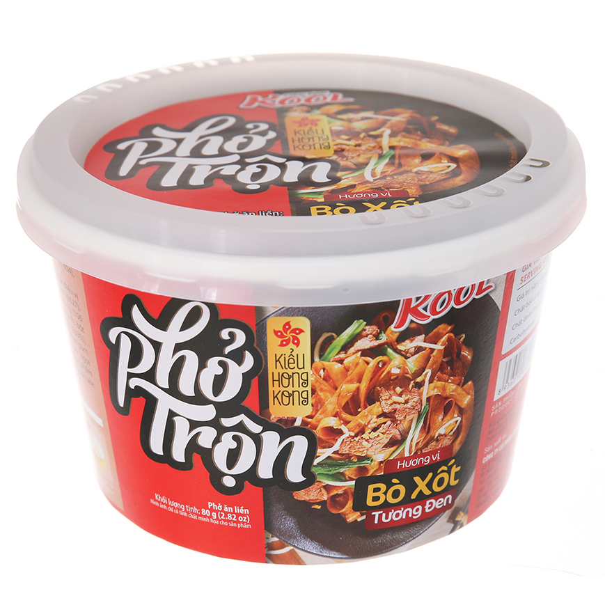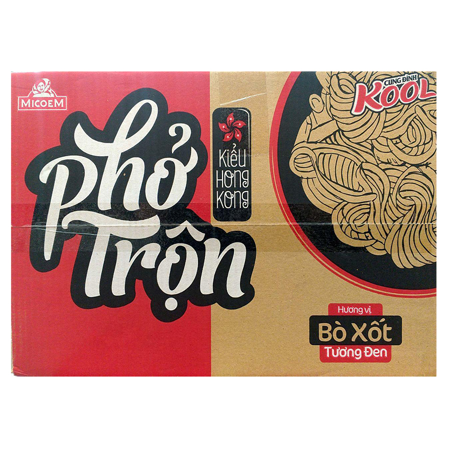 Mua tại Tiktok- Thùng 12 Hộp Phở Trộn Bò Sốt Tương Đen Cung Đình Kool (80g / Hộp) được làm từ bột mì, tinh bột khoai mì, chiết xuất nấm men, cà chua, hành tây, hành, lá mùi