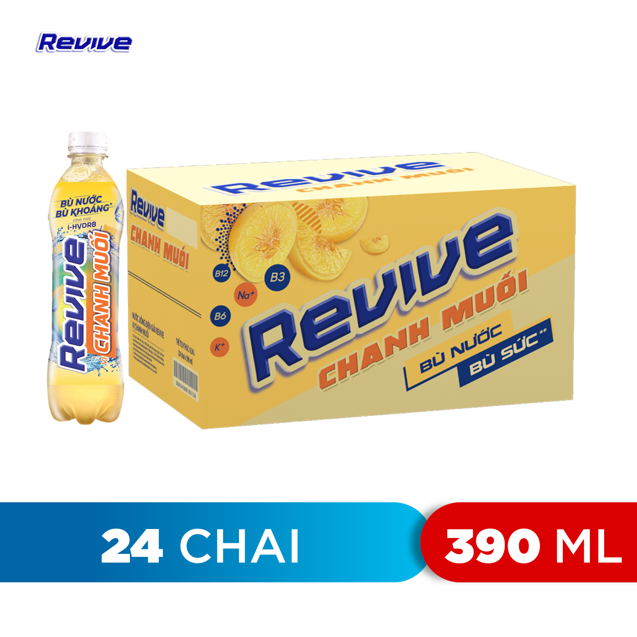 REVIVE - Nước uống điện giải số 1 Việt Nam, với công thức i-Hydr8 độc đáo, ưu việt, bổ sung muối khoáng (Na+, K+) và các vitamin nhóm B (B3, B6, B12), giúp bù nước vượt trội, bù khoáng và bù đắp năng lượng, cho bạn trở lại cuộc vui năng động. Đặc biệt vị chanh muối ngon tuyệt thêm sảng khoái, đã khát và sảng khoái, bù nước và bù sức nhanh, cho bạn nhanh chóng trở lại cuộc vui năng động.