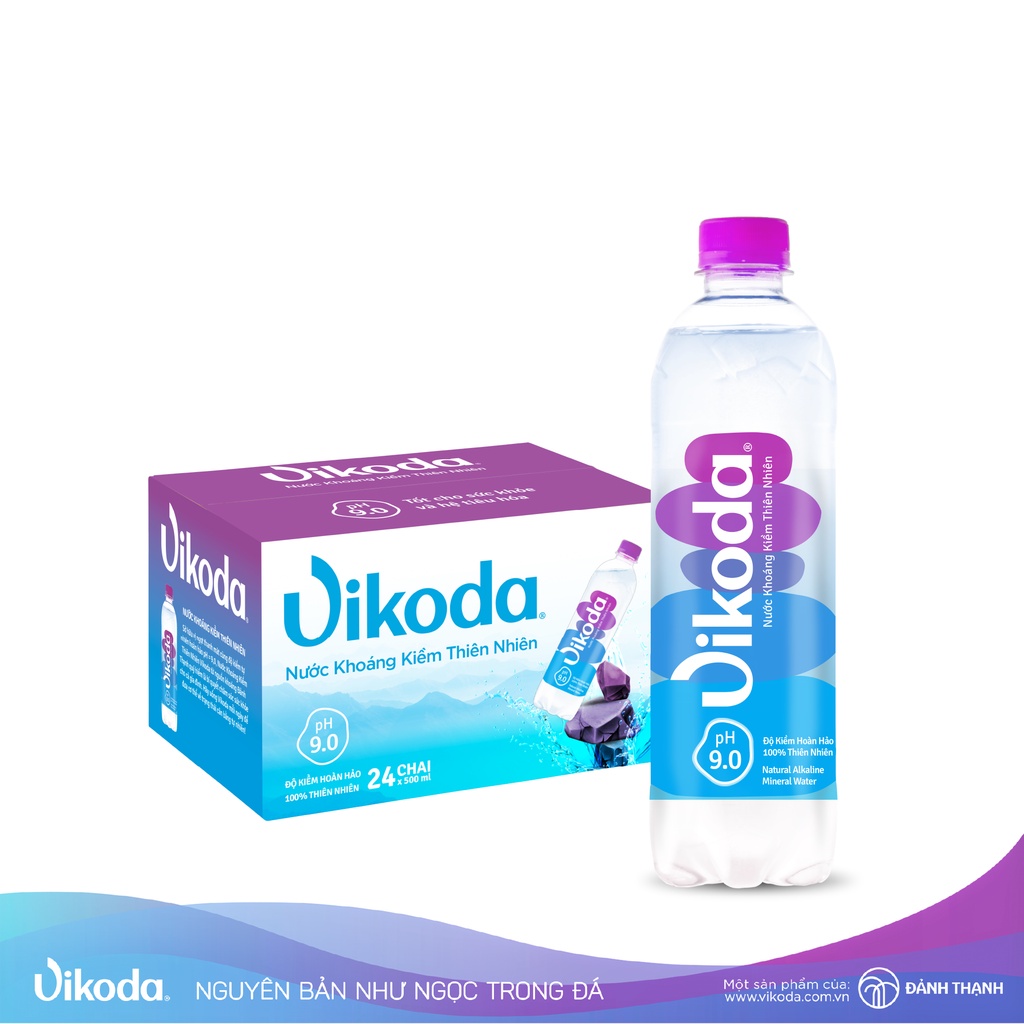 NƯỚC KHOÁNG KIỀM THIÊN NHIÊN VIKODA pH 9,0 TỐT CHO SỨC KHỎE VÀ HỆ TIÊU HÓA   Nằm sâu dưới chân núi Hòn Chuông thuộc dãy Trường Sơn, nguồn khoáng kiềm Đảnh Thạnh là món quà vô giá của thiên nhiên ban tặng cho vùng đất Khánh Hoà, Việt Nam. Các kết quả nghiên cứu từ 1977 đến 1999 đã chỉ ra Đảnh Thạnh là nguồn nước thiên nhiên có tính khoáng kiềm tự nhiên hoàn hảo, hàm lượng khoáng nhẹ và độ kiềm pH = 9.0, phù hợp uống bổ trợ sức khoẻ hàng ngày. Nước khoáng kiềm thiên nhiên Vikoda bảo toàn vẹn nguyên tinh túy từ nguồn khoáng kiềm Đảnh Thạnh quý hiếm.  Nước khoáng kiềm thiên nhiên Vikoda được khai thác từ mỏ đi lên được đưa thẳng vào nhà máy chiết và chỉ qua quá trình lọc thô, lọc bằng tia cực tím (UV). Sản phẩm sở hữu vị ngọt thanh mát và độ kiềm hoàn hảo pH = 9.0 100% tự nhiên cùng với các khoáng chất giúp trung hòa axit dạ dày dư thừa, đưa cơ thể trở về trạng thái cân bằng khoẻ mạnh tự nhiên.   Uống Vikoda mỗi ngày sẽ hỗ trợ tích cực cho hệ tiêu hóa và sức khỏe. Uống nước khoáng kiềm thiên nhiên Vikoda mang đến những lợi ích tích cực cho hệ tiêu hóa và sức khỏe!
