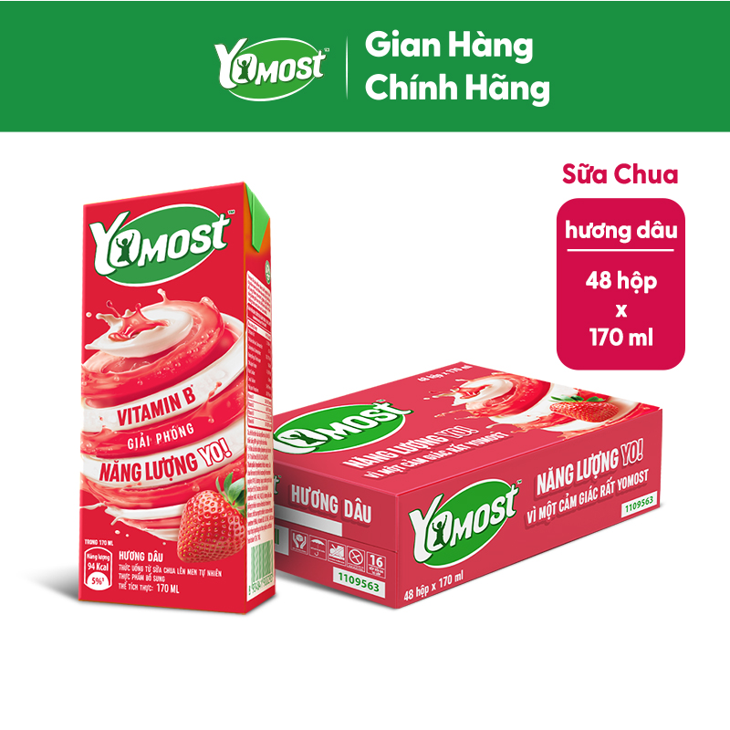 - Thùng 48 Hộp Sữa Chua Lên Men Tự Nhiên Yomost Vị Dâu được làm từ sữa chua lên men tự nhiên kết hợp cùng hương vị cam tươi tự nhiên thơm ngon, giúp cung cấp